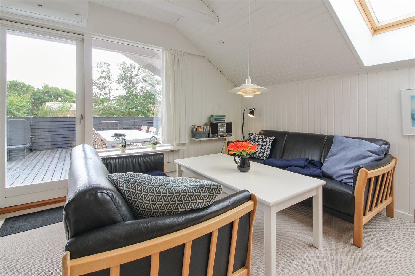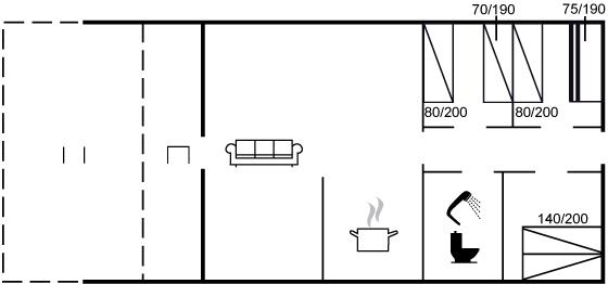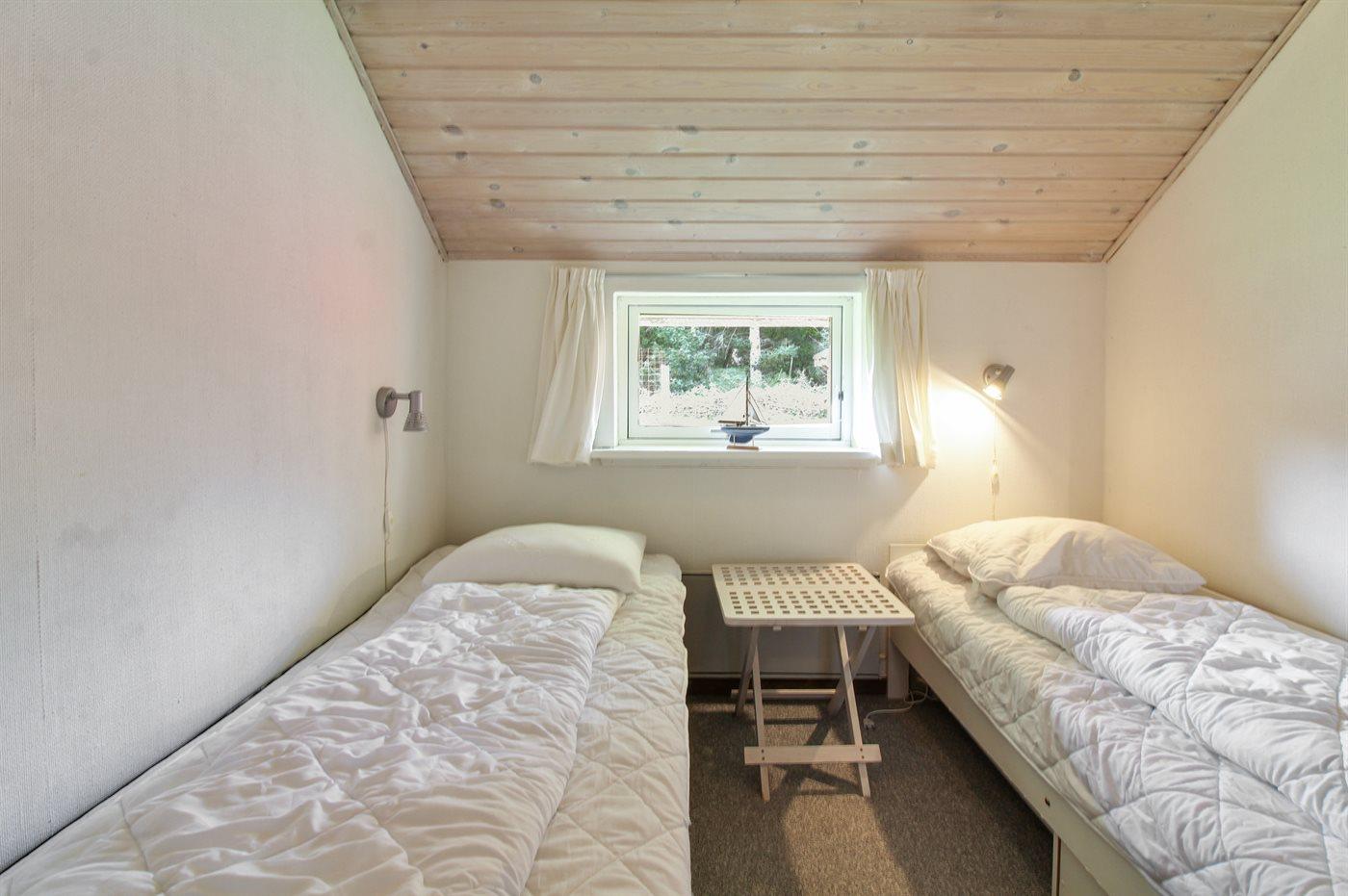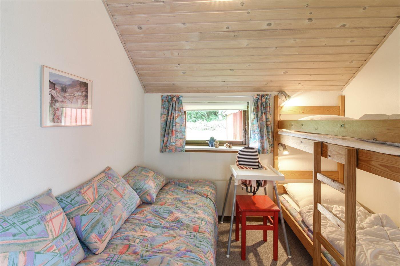 Der er i alt 3 soveværelser. Sovepladserne fordeler sig på: 2 sovepladser i dobbeltseng. 3 sovepladser i enkeltsenge. 2 sovepladser i køjeseng. Derudover er der 1 stk. barneseng.