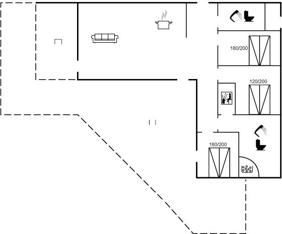 Der er i alt 3 soveværelser. Sovepladserne fordeler sig på: 6 sovepladser i dobbeltsenge. 2 sovepladser i enkeltsenge. 2 af disse sovepladser befinder sig på husets hems. Derudover er der 1 stk. barneseng.