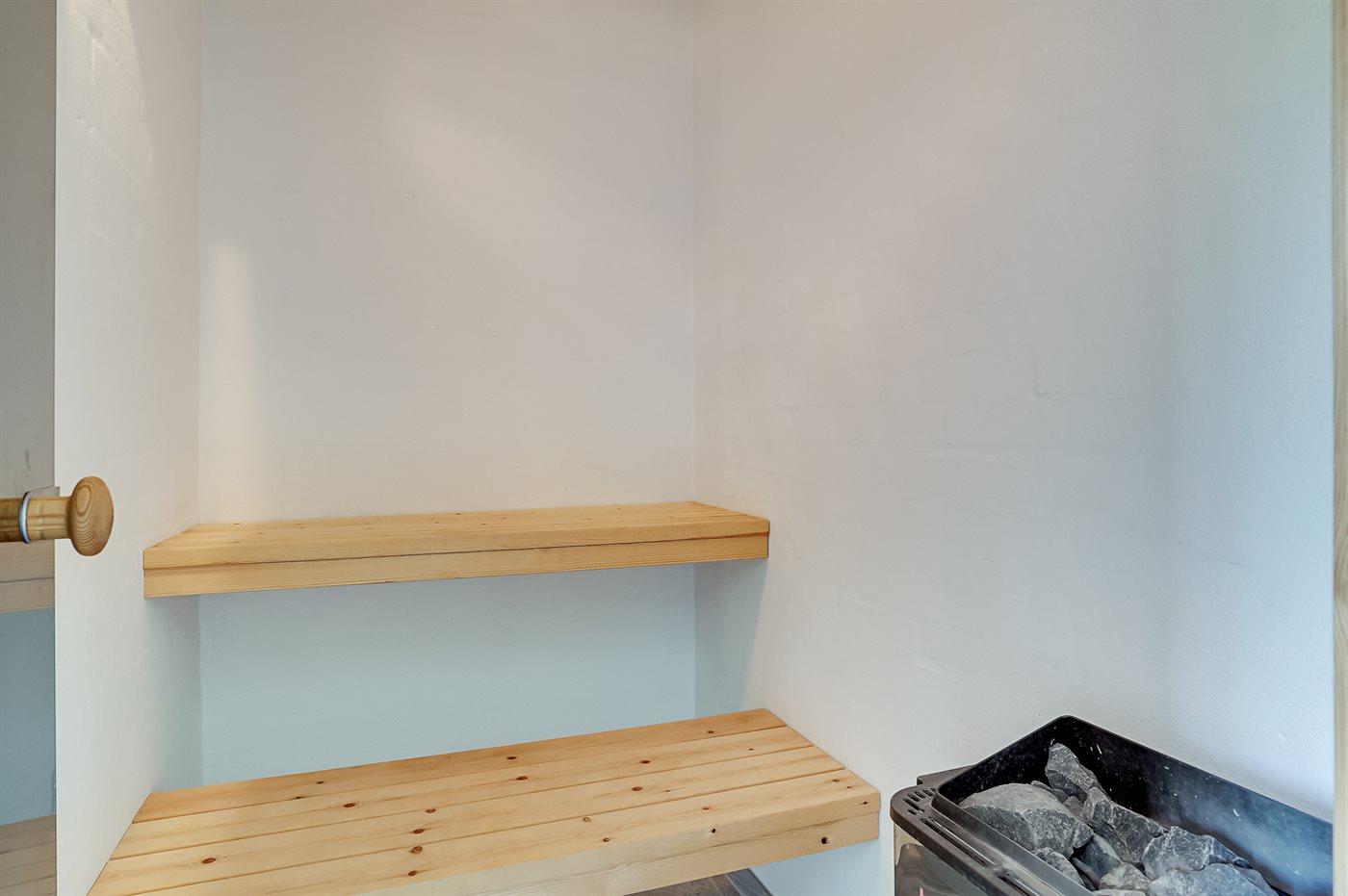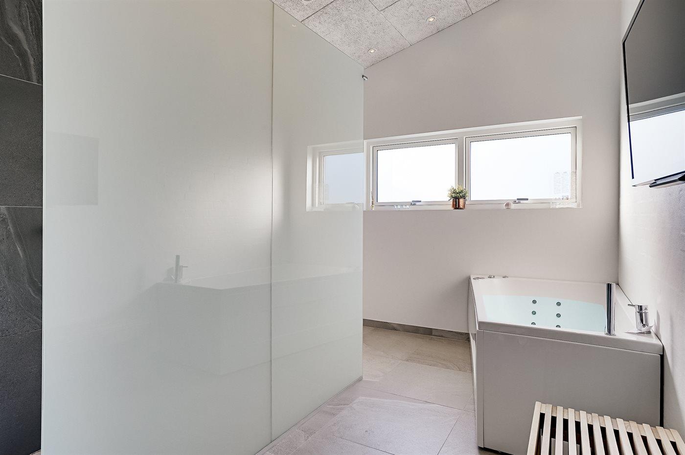 Der er 2 badeværelser med bruseniche og 2 toiletter. Der er gulvvarme på 2 badeværelser. I saunaen er der mulighed for afslapning.