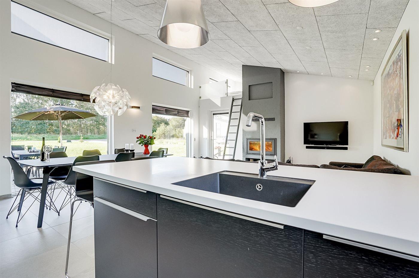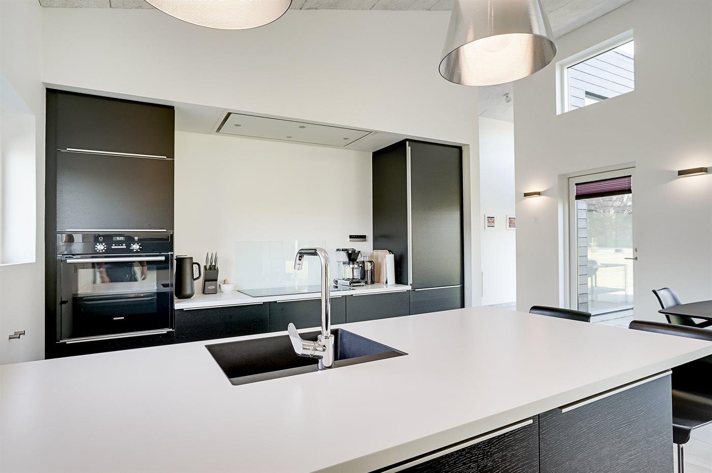 Køkkenet er udstyret med 1 køleskab. Der er 4 induktionskogeplader, varmluftovn, mikrobølgeovn samt opvaskemaskine.