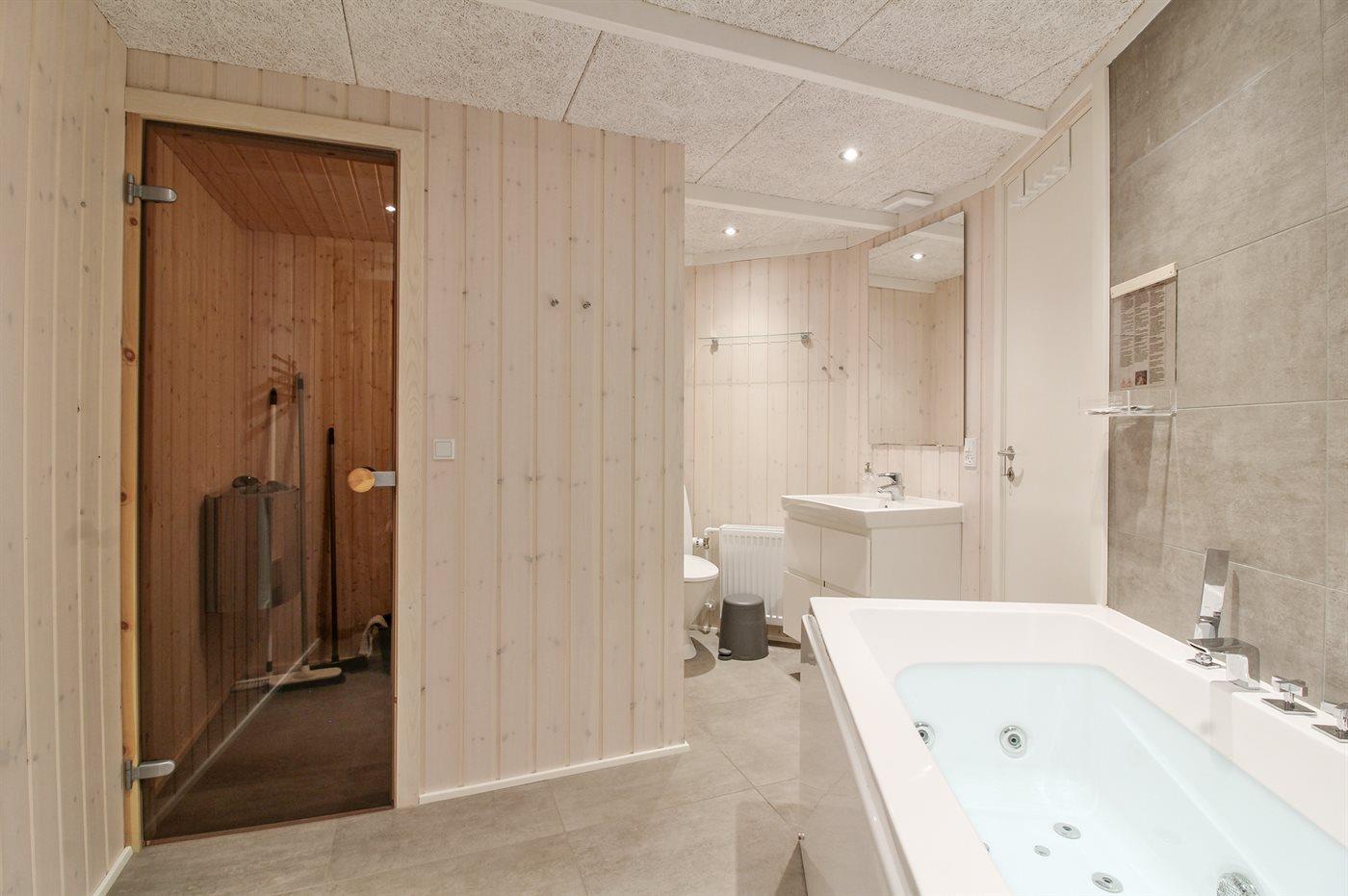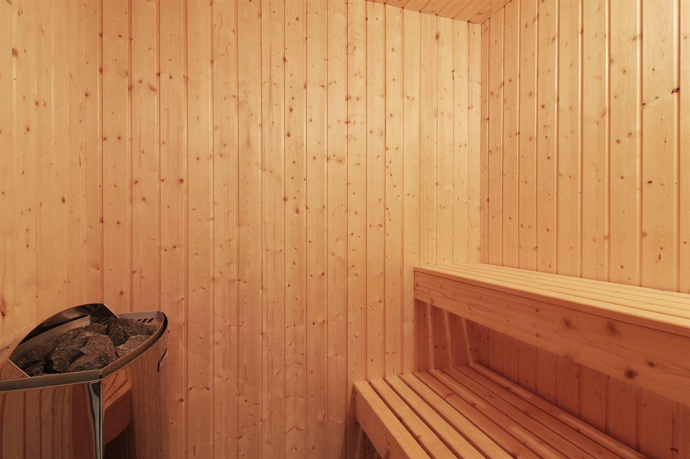 Der er 2 badeværelser med bruseniche og 2 toiletter. Der er gulvvarme på 2 badeværelser. I saunaen er der mulighed for afslapning.