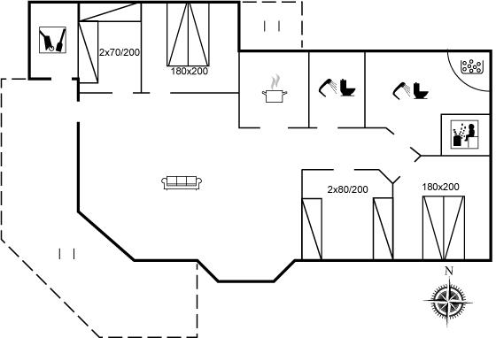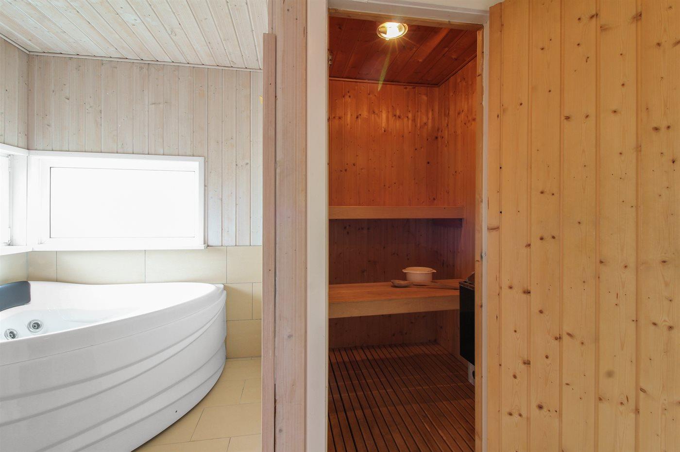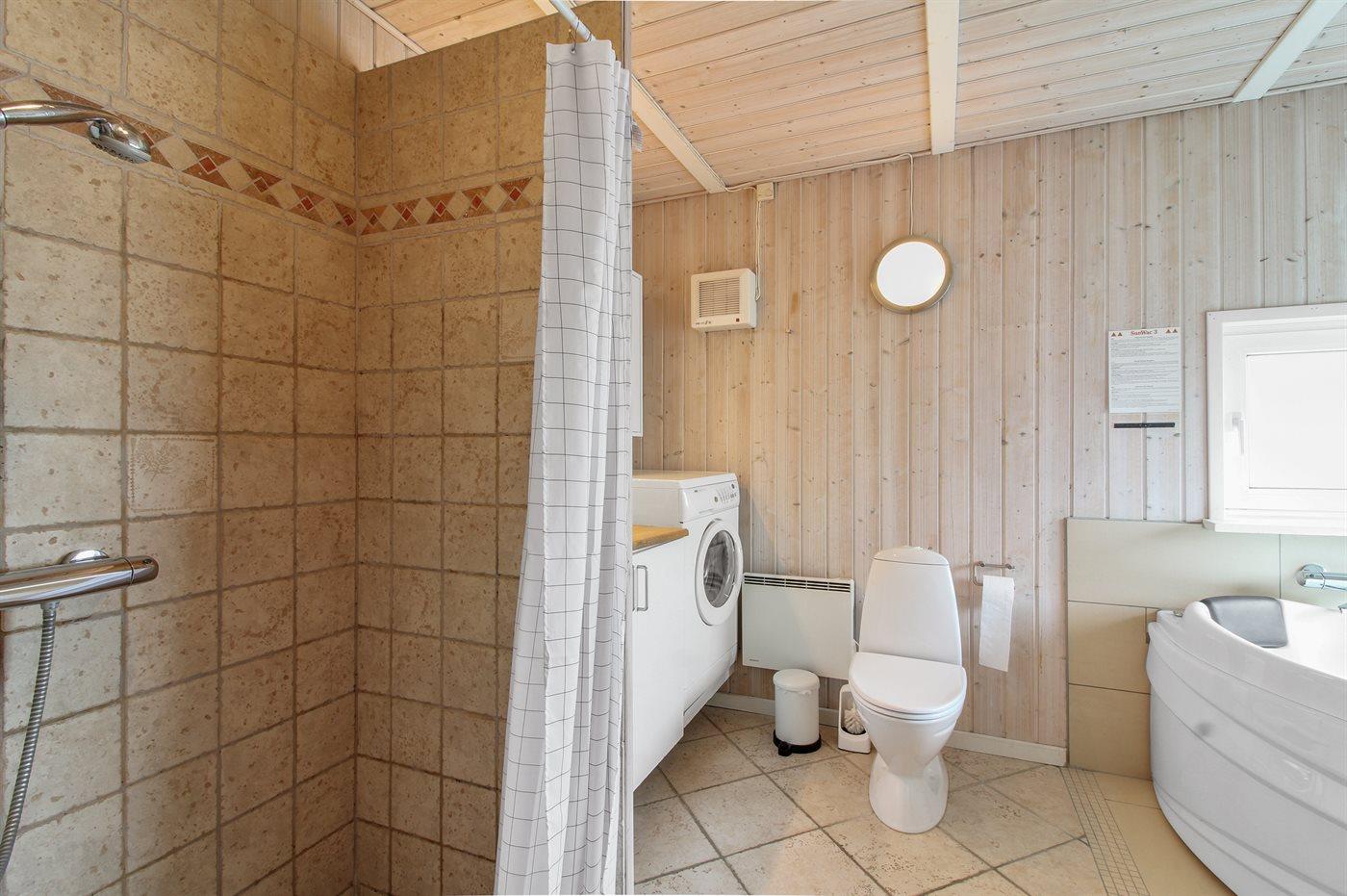 Der er 2 badeværelser med bruseniche og 2 toiletter. Der er gulvvarme på 1 badeværelse. I saunaen er der mulighed for afslapning.