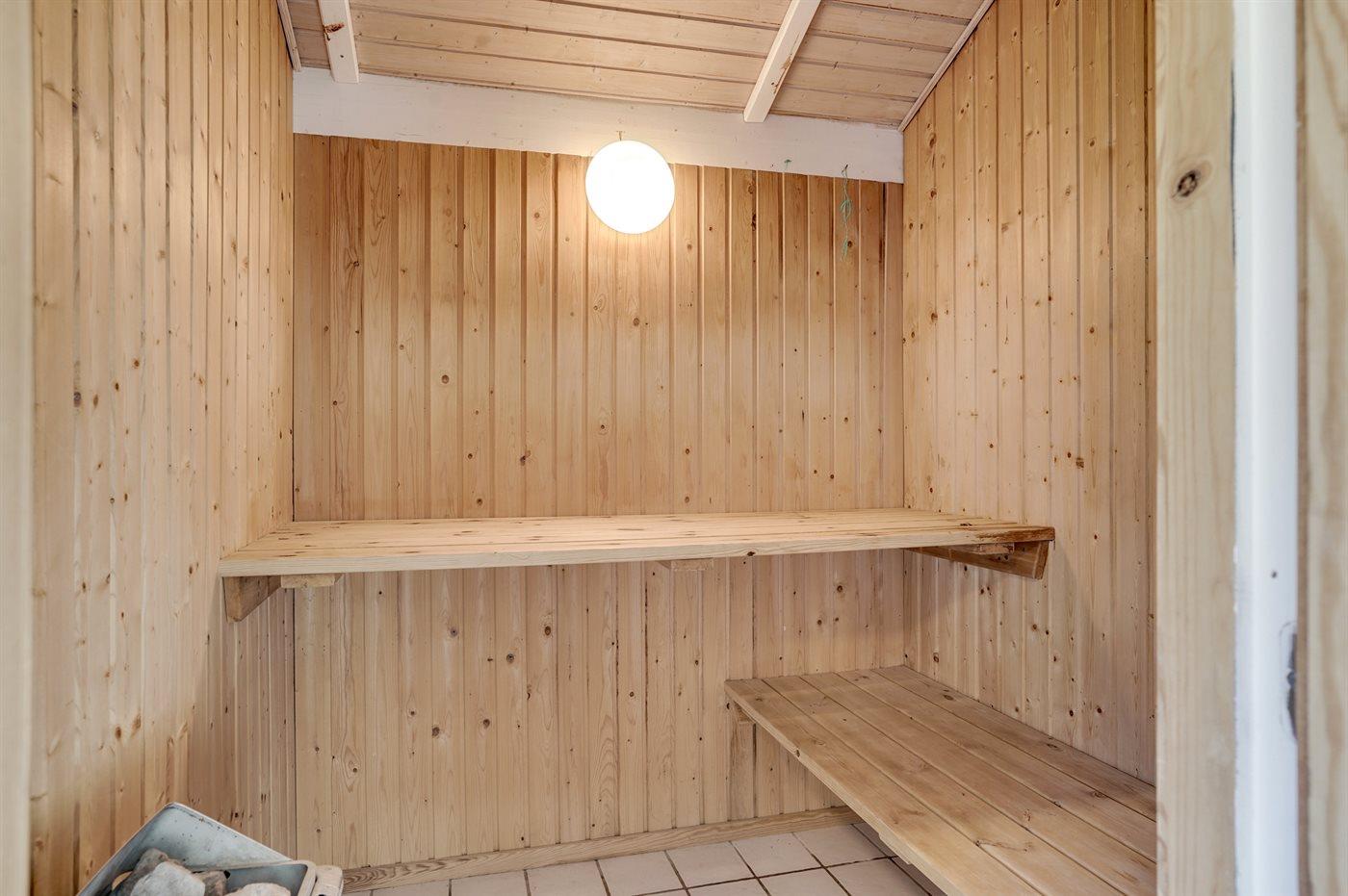 Der er 1 badeværelse med bruseniche og 1 toilet.. Der er gulvvarme på 1 badeværelse. I saunaen er der mulighed for afslapning.