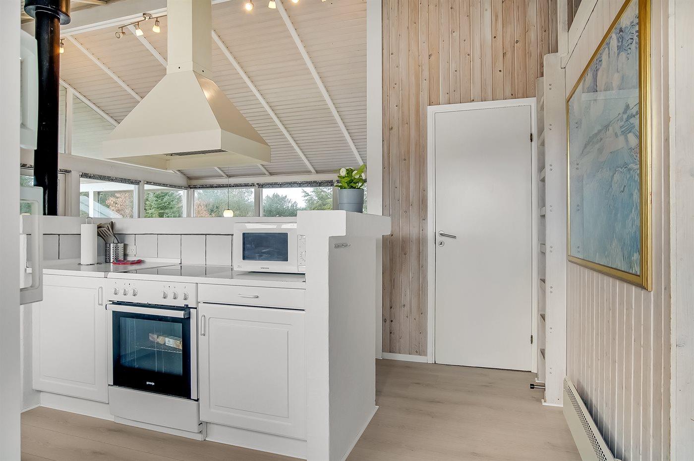 Køkkenet er udstyret med 1 køleskab. Der er 4 keramiske kogeplader, varmluftovn, mikrobølgeovn samt opvaskemaskine.