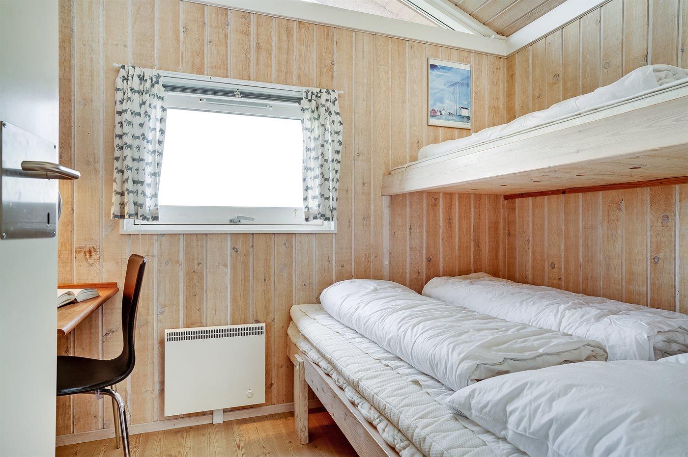 Der er i alt 3 soveværelser. Sovepladserne fordeler sig på: 6 sovepladser i dobbeltsenge.1 soveplads i køjeseng.