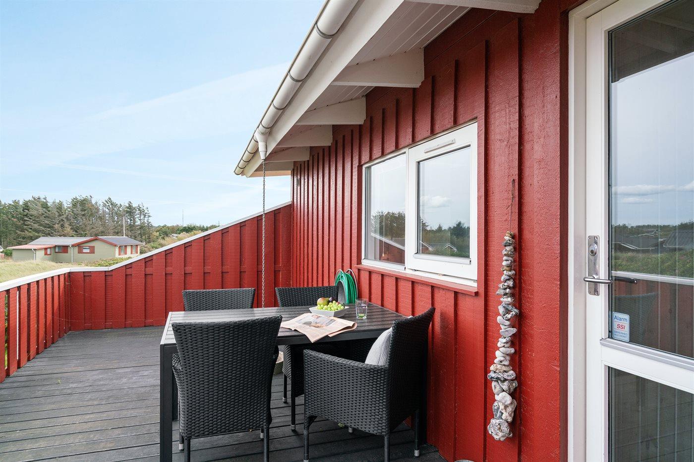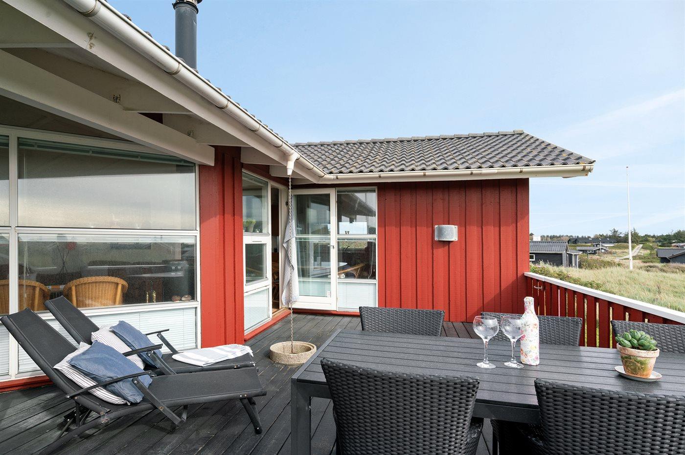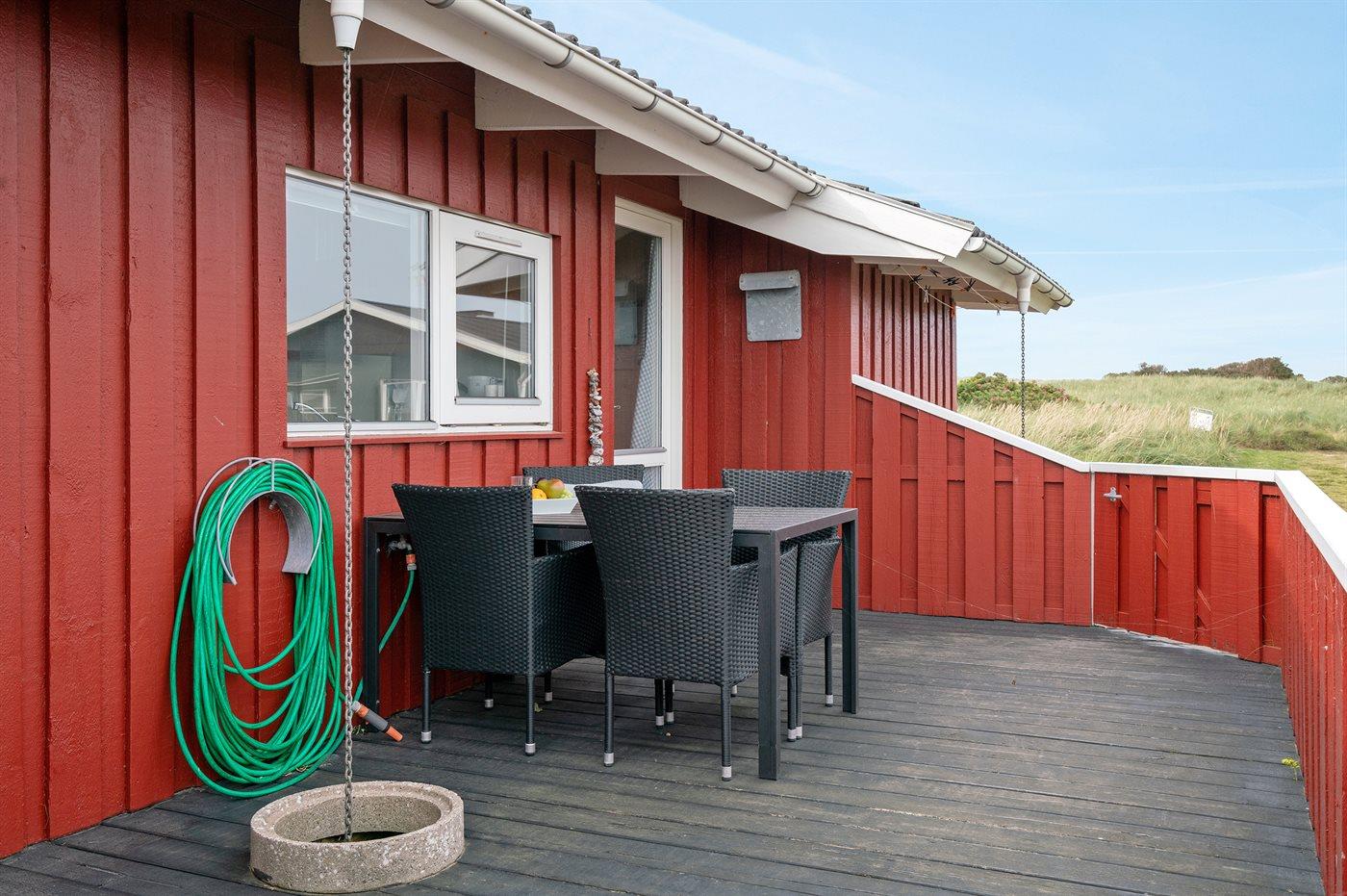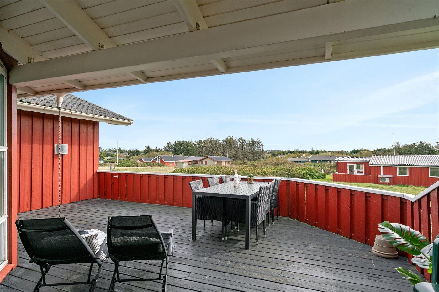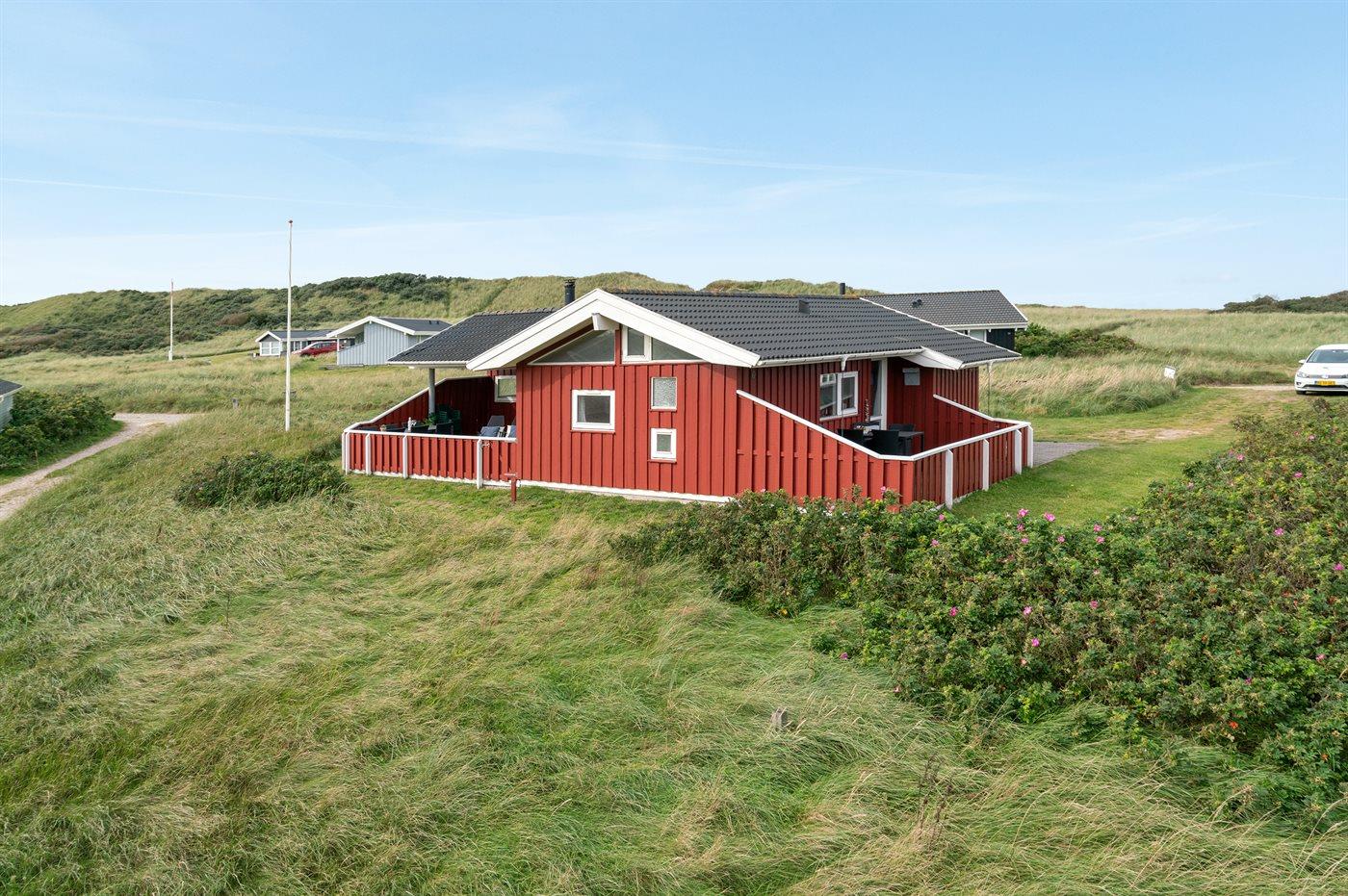 Skønt, velholdt sommerhus beliggende i et roligt område lige bag klitterne til Vesterhavet, hvor der fra grunden er udsigt til vandet. Til huset hører 2 lukkede terrasser med gode læforhold.