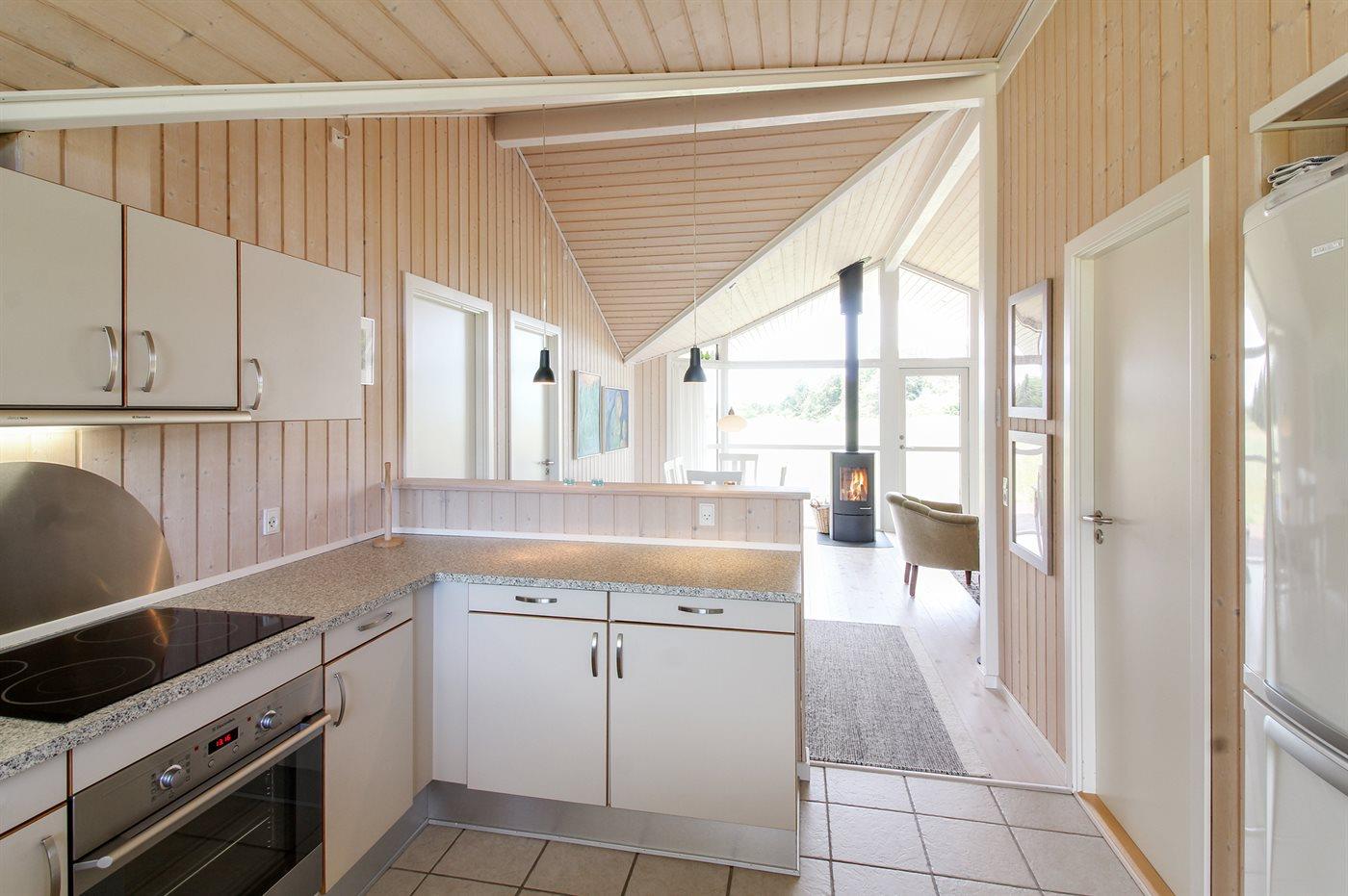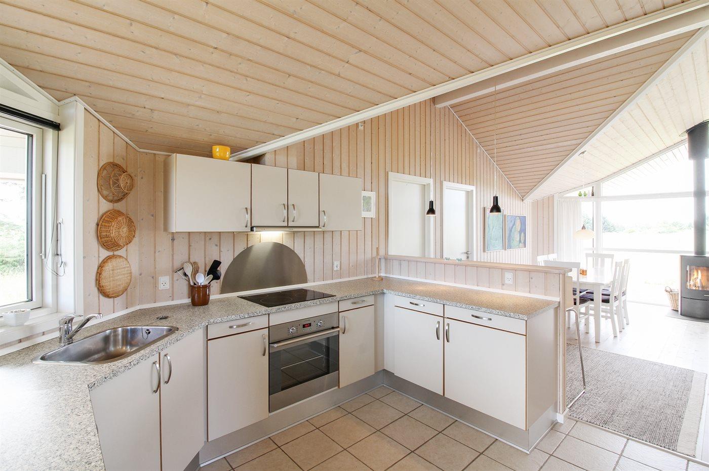 Køkkenet er udstyret med 1 køleskab. Der er 4 keramiske kogeplader, varmluftovn samt opvaskemaskine.