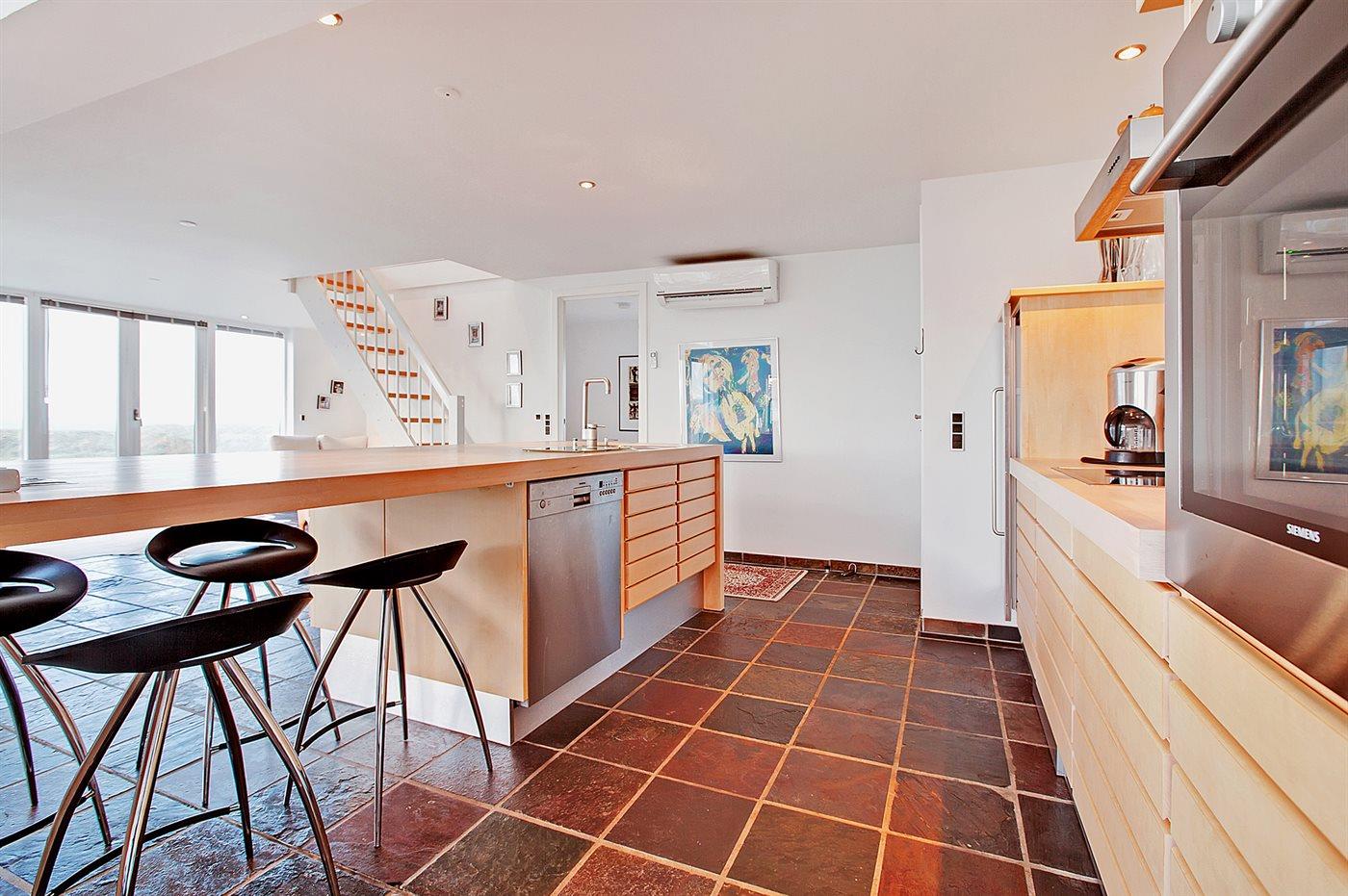 Køkkenet er udstyret med 1 køleskab. Der er 4 induktionskogeplader, varmluftovn samt opvaskemaskine.