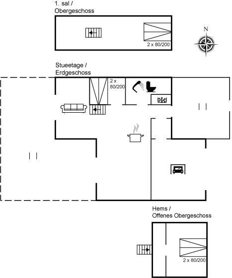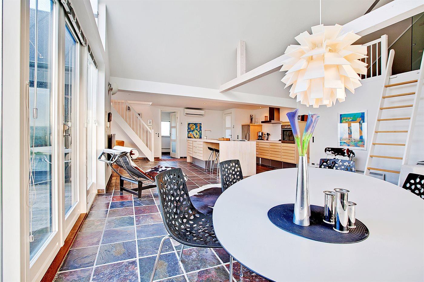 Huset fremstår med en lys og smagfuld indretning med ekstra opholdsstue på 1. sal, hvorfra der især er flot udsigt over vandet, og hvor 2 sovepladser i dobbeltseng befinder sig i den ene ende af stuen. Desuden er det ene soveværelse indrettet på en stor og rummelig hems, som er adskilt fra resten af huset med en glasvæg med glasdør og dermed bevarer den skønne udsigt fra værelset. Et hus som virkelig skal opleves !