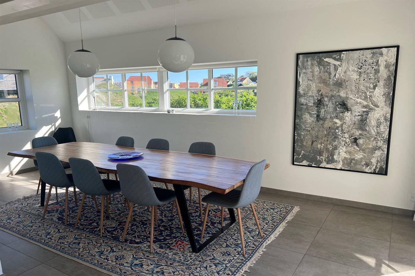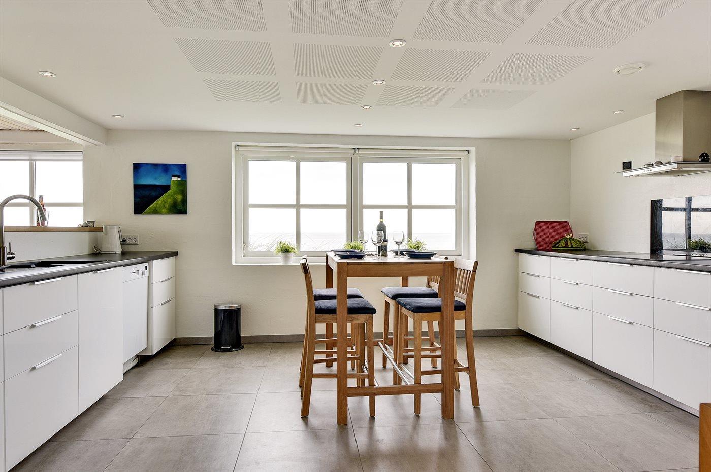 Køkkenet er udstyret med 2 køleskabe. Der er 4 induktionskogeplader, varmluftovn, mikrobølgeovn samt opvaskemaskine.