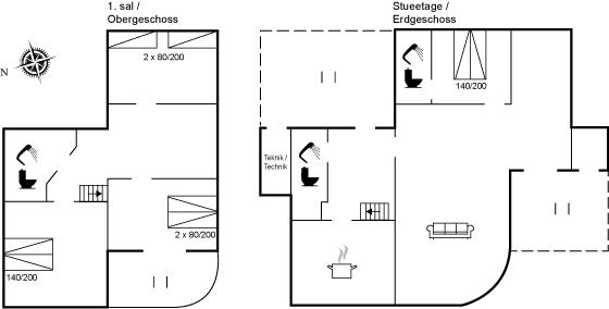 Der er i alt 4 soveværelser. Sovepladserne fordeler sig på: 6 sovepladser i dobbeltsenge. 2 sovepladser i enkeltsenge.