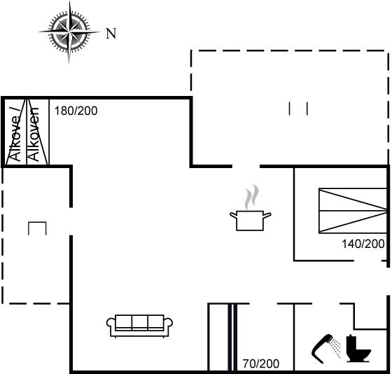 Der er i alt 2 soveværelser. Sovepladserne fordeler sig på: 2 sovepladser i dobbeltseng. 2 sovepladser i køjeseng. 2 sovepladser i alkove. Derudover er der 1 stk. barneseng.