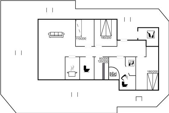 Der er i alt 4 soveværelser. Sovepladserne fordeler sig på: 2 værelser med dobbeltseng. 1 værelse med køjeseng og 1 værelse med sovesofa. Derudover er der 1 stk. barneseng med tilhørende topmadras.