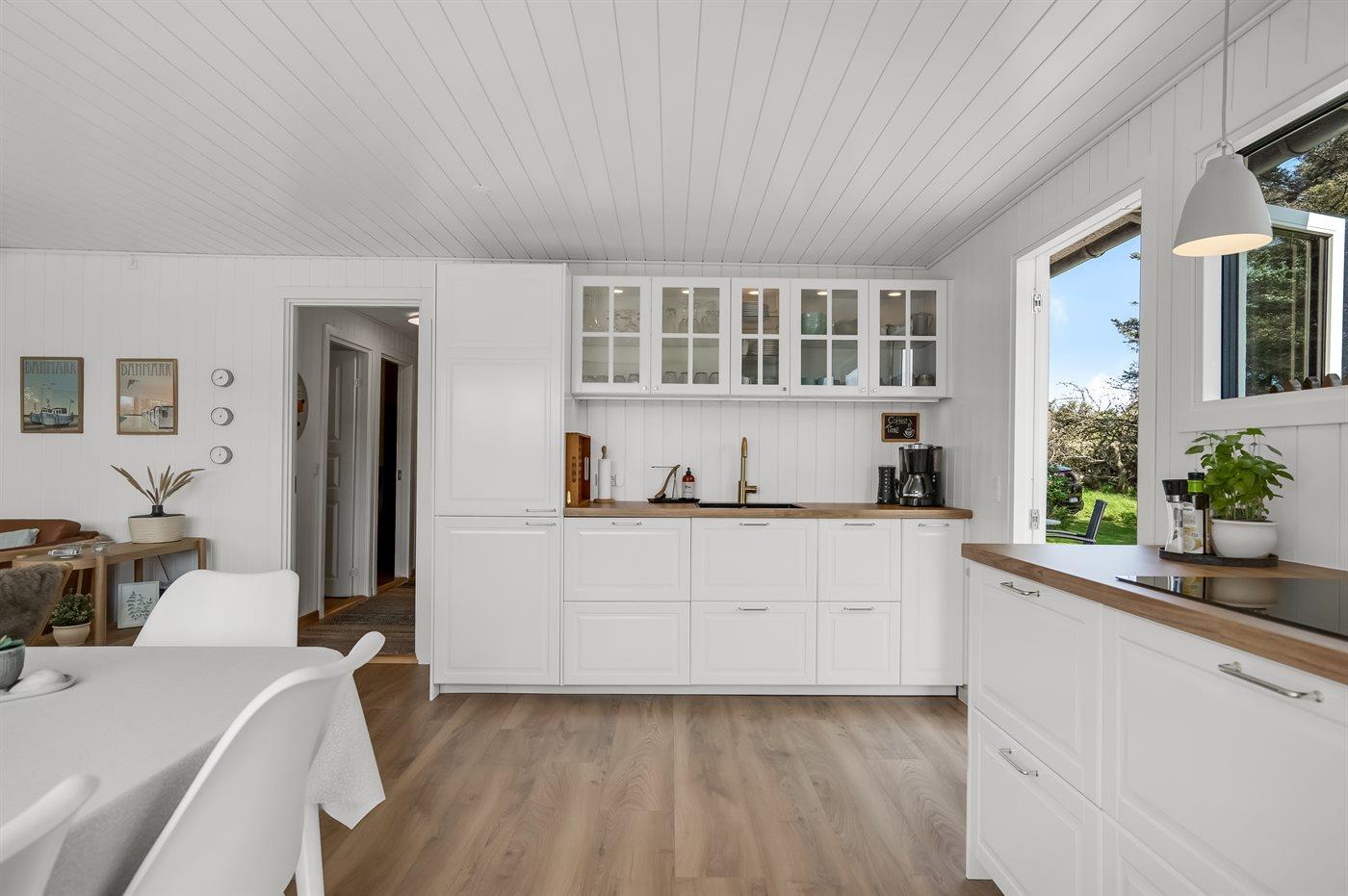 Køkkenet er udstyret med 1 køleskab, induktionskogeplade med 4 zoner, kombi-ovn med almindelig ovn, varmluftovn, mikrobølgeovn og Airfryer samt opvaskemaskine.