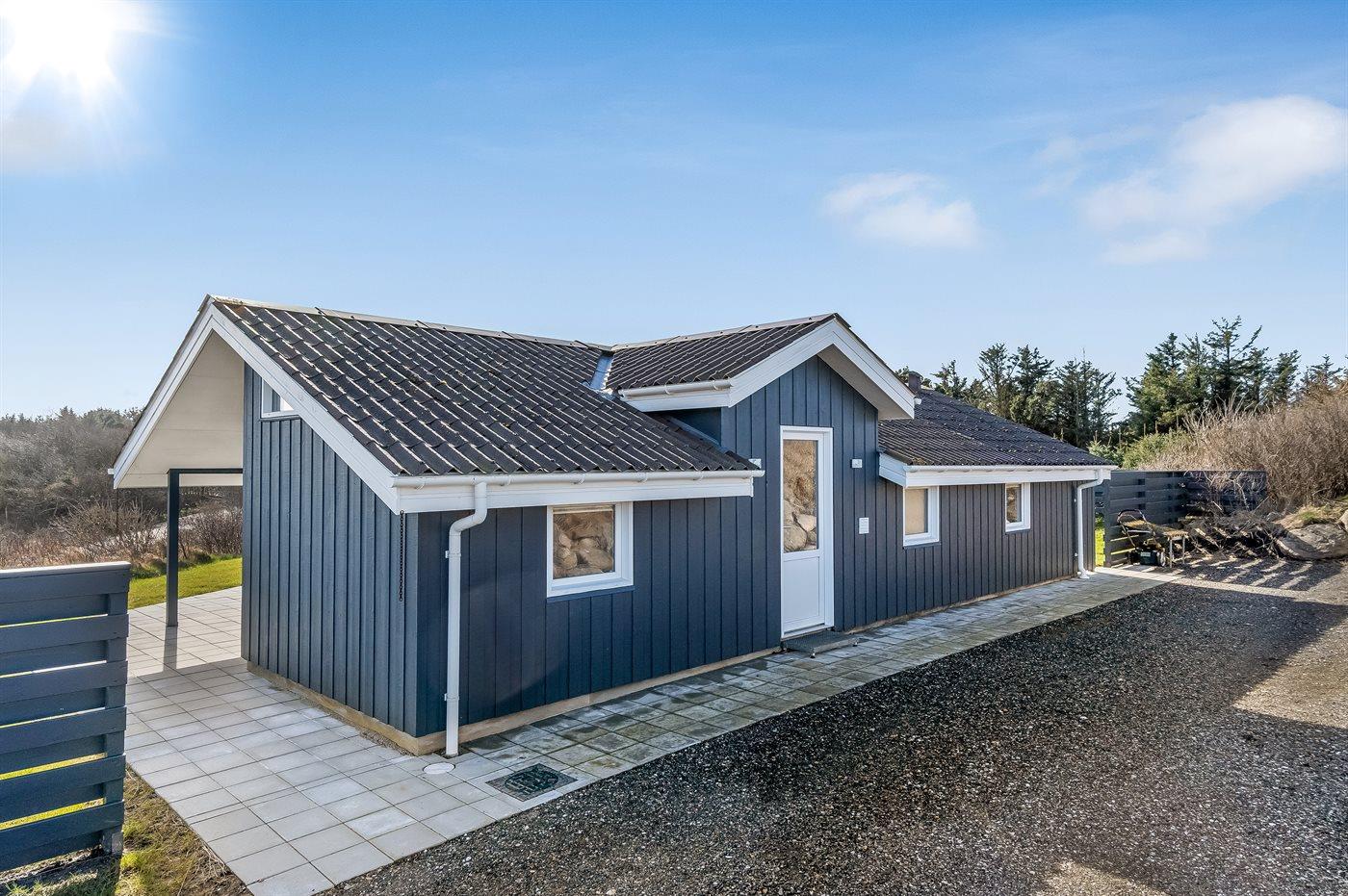 Ferieboligen er beliggende på en 1300 m² stor naturgrund. Der er 500 m til havet. Nærmeste forretning er beliggende i en afstand af 150 m. Til ferieboligen hører 45 m² terrasseareal. Desuden er der 11 m² overdækket terrasse. Der er redskabsrum. Grill til rådighed. Parkering ved ferieboligen.