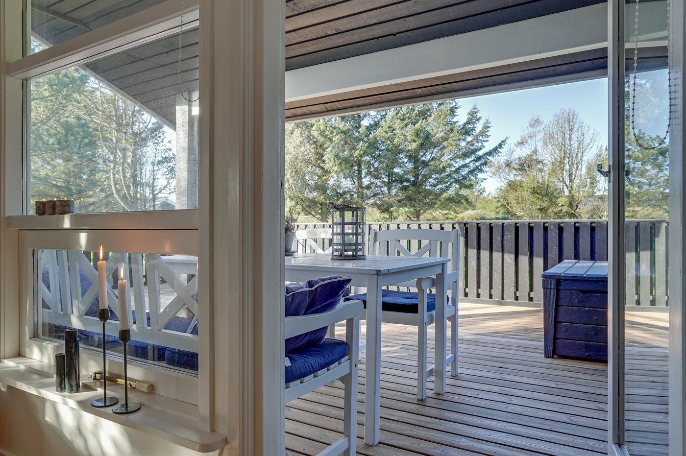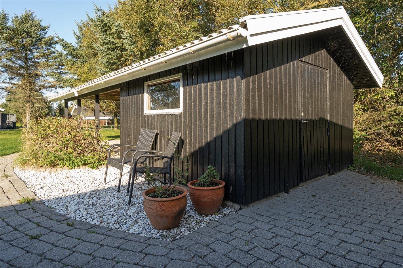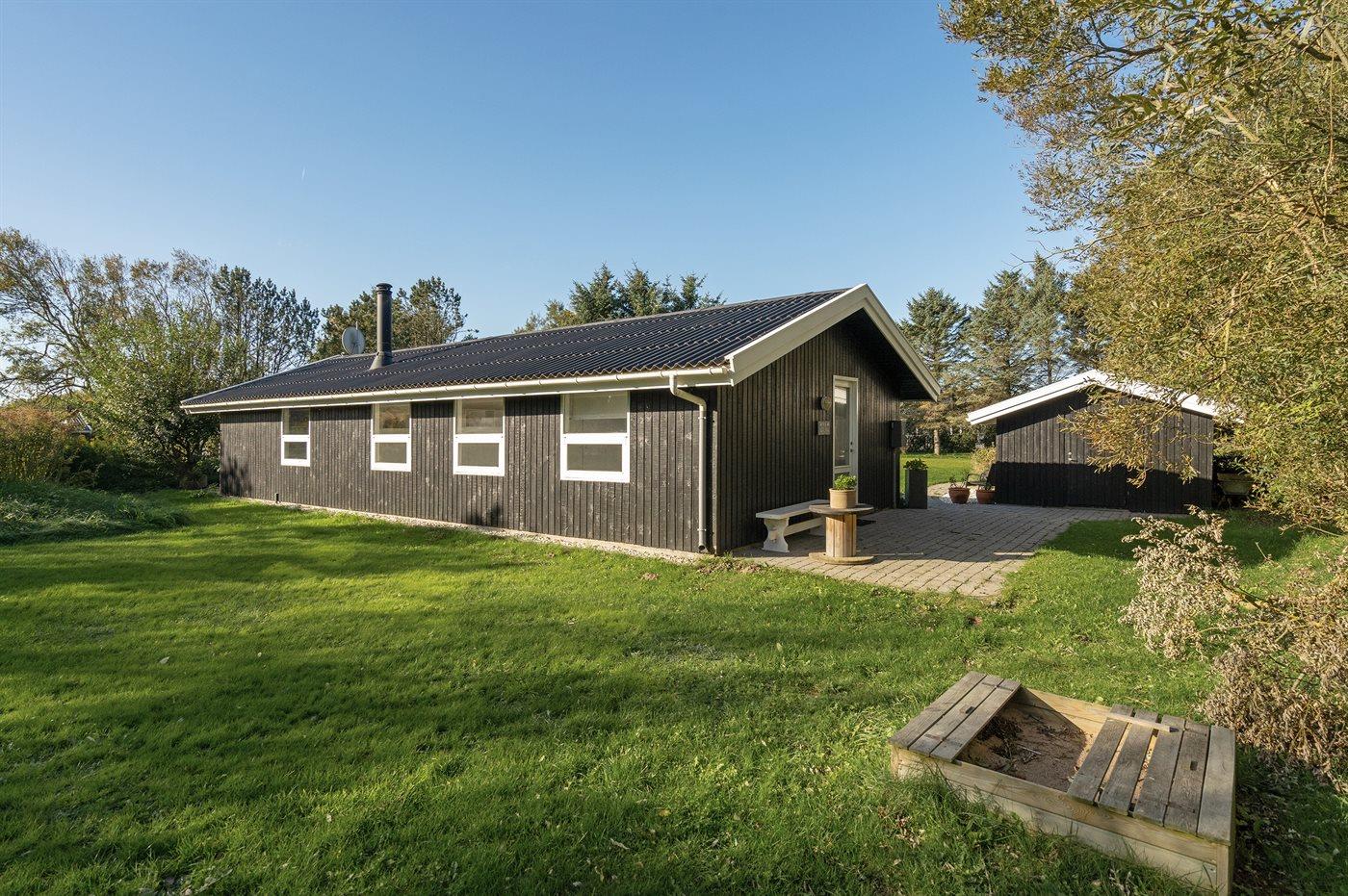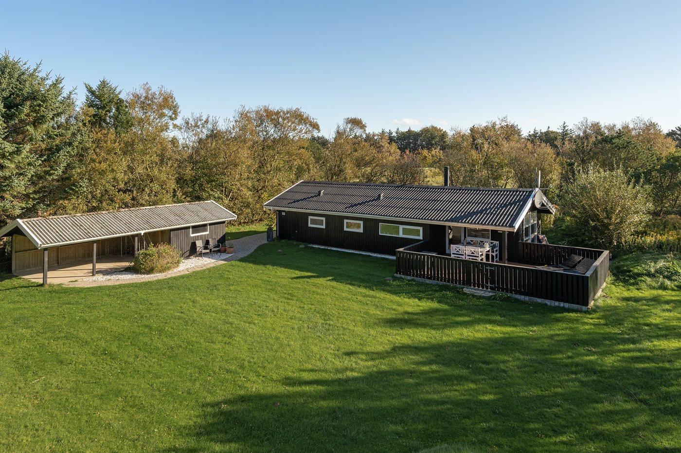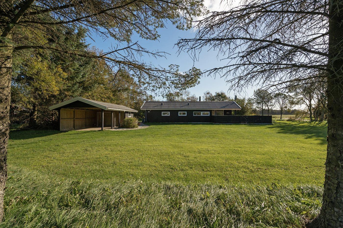 Ferieboligen er beliggende på en 1486 m² stor naturgrund. Der er 1360 m til havet. Nærmeste forretning er beliggende i en afstand af 1400 m. Til ferieboligen hører 30 m² terrasseareal. Desuden er der 10 m² overdækket terrasse. Sandkasse. Fodboldmål. Grill til rådighed. Der er carport til rådighed. Parkering ved ferieboligen.