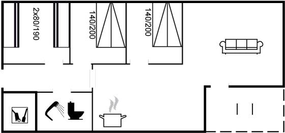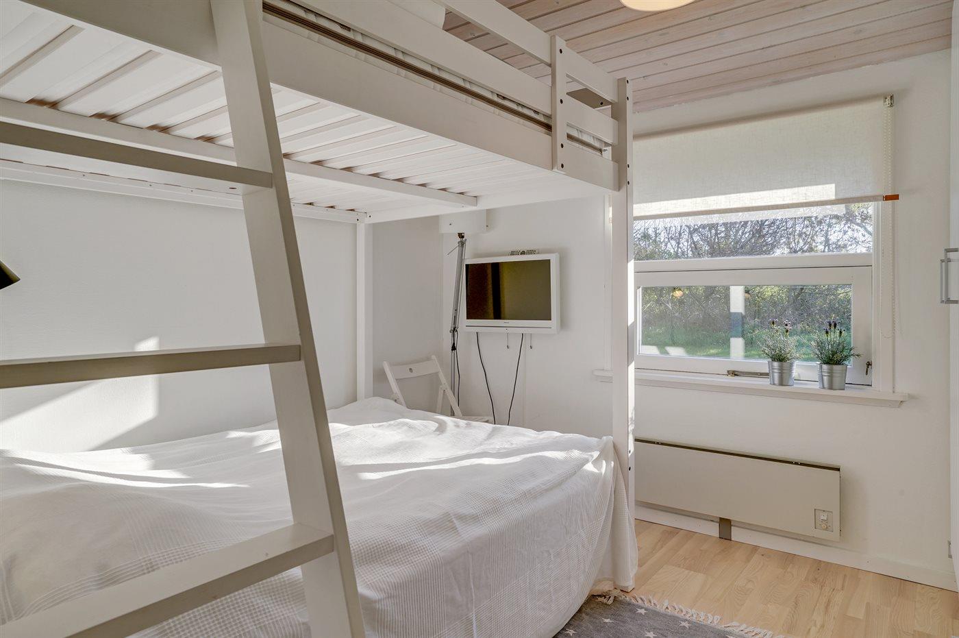 Der er i alt 3 soveværelser. Sovepladserne fordeler sig på: 4 sovepladser i dobbeltsenge. 4 sovepladser i køjesenge. Derudover er der 1 stk. barneseng.