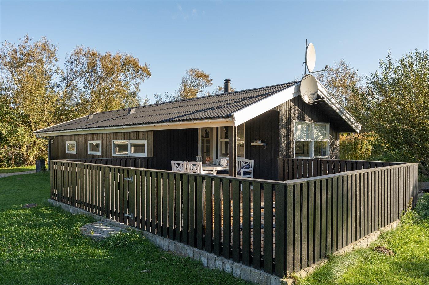 Hyggeligt sommerhus nær Lønstrup med store terrasser og plads til udendørs aktiviteter.