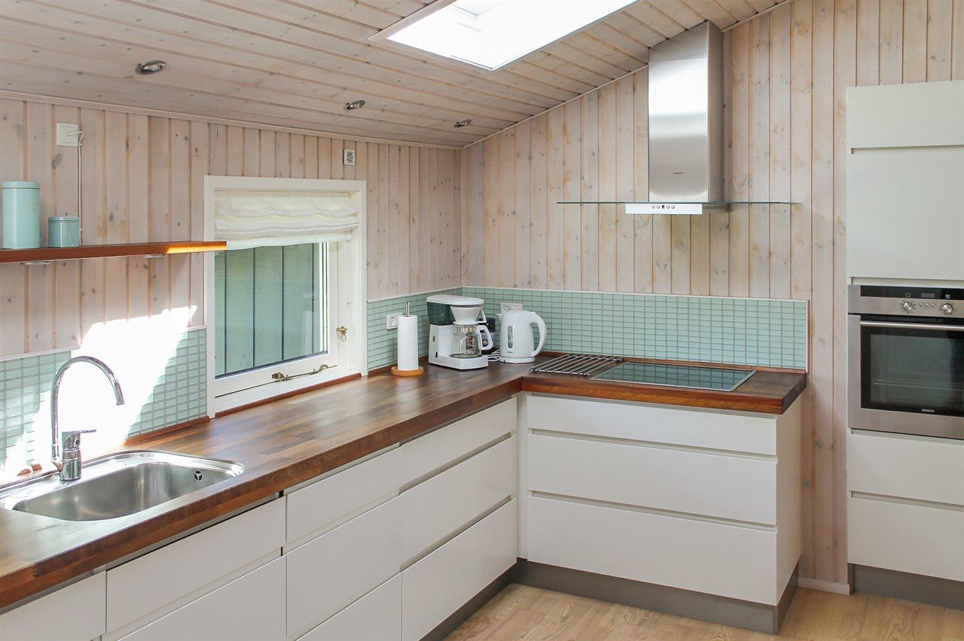 Køkkenet er udstyret med 1 køleskab. Der er 4 induktionskogeplader, varmluftovn, mikrobølgeovn samt opvaskemaskine.