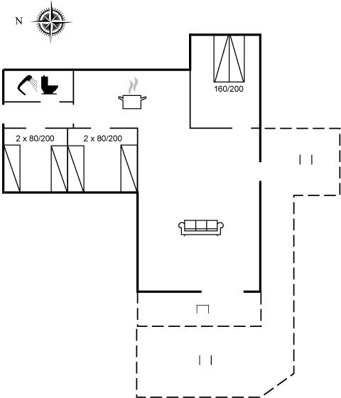 Der er i alt 3 soveværelser. Sovepladserne fordeler sig på: 2 sovepladser i dobbeltseng. 4 sovepladser i enkeltsenge.