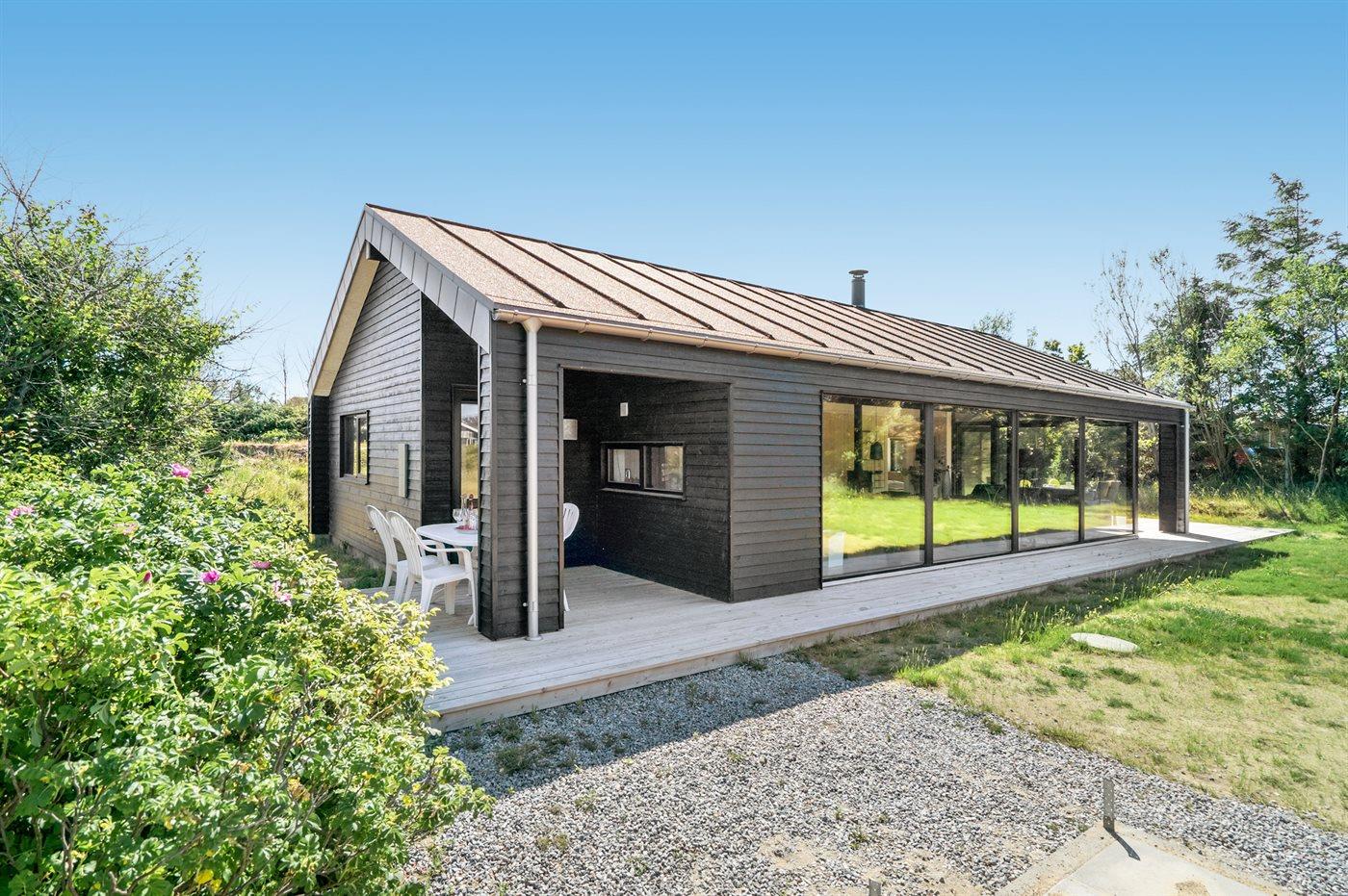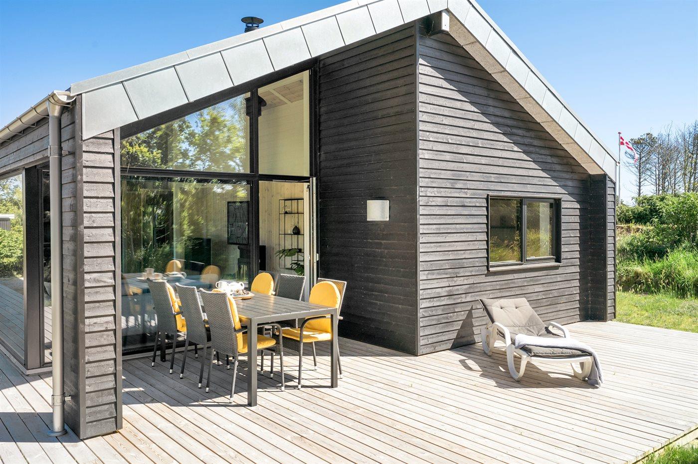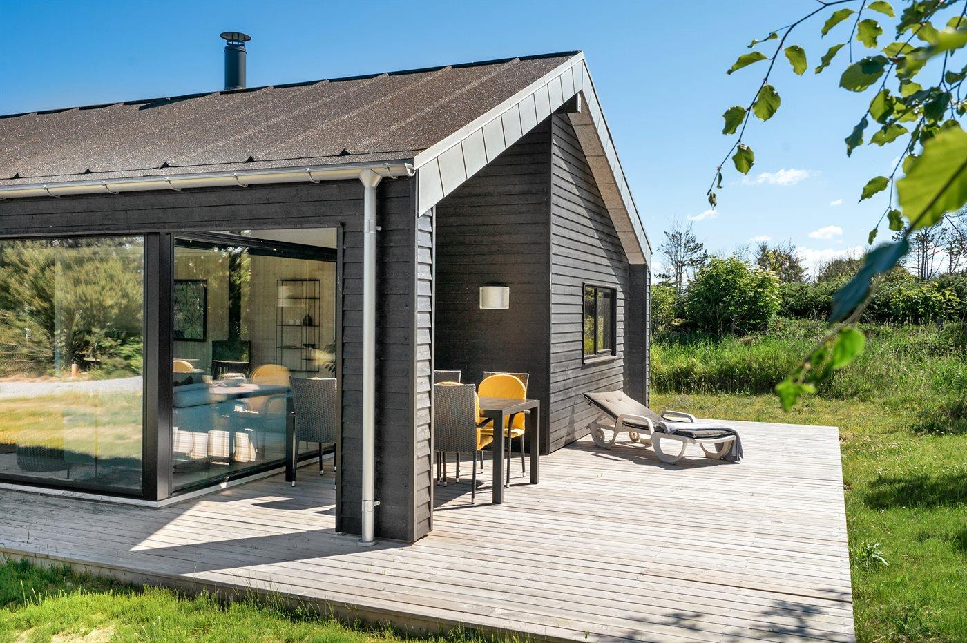 Nyopført sommerhus nær Lønstrups hav og bymiljø med moderne faciliteter og to terrasser.