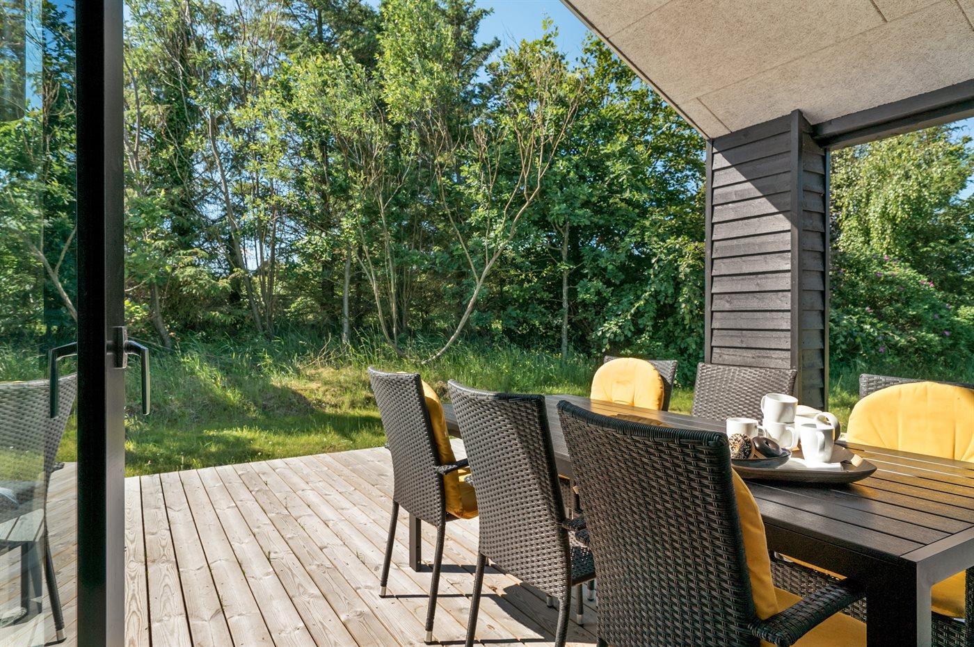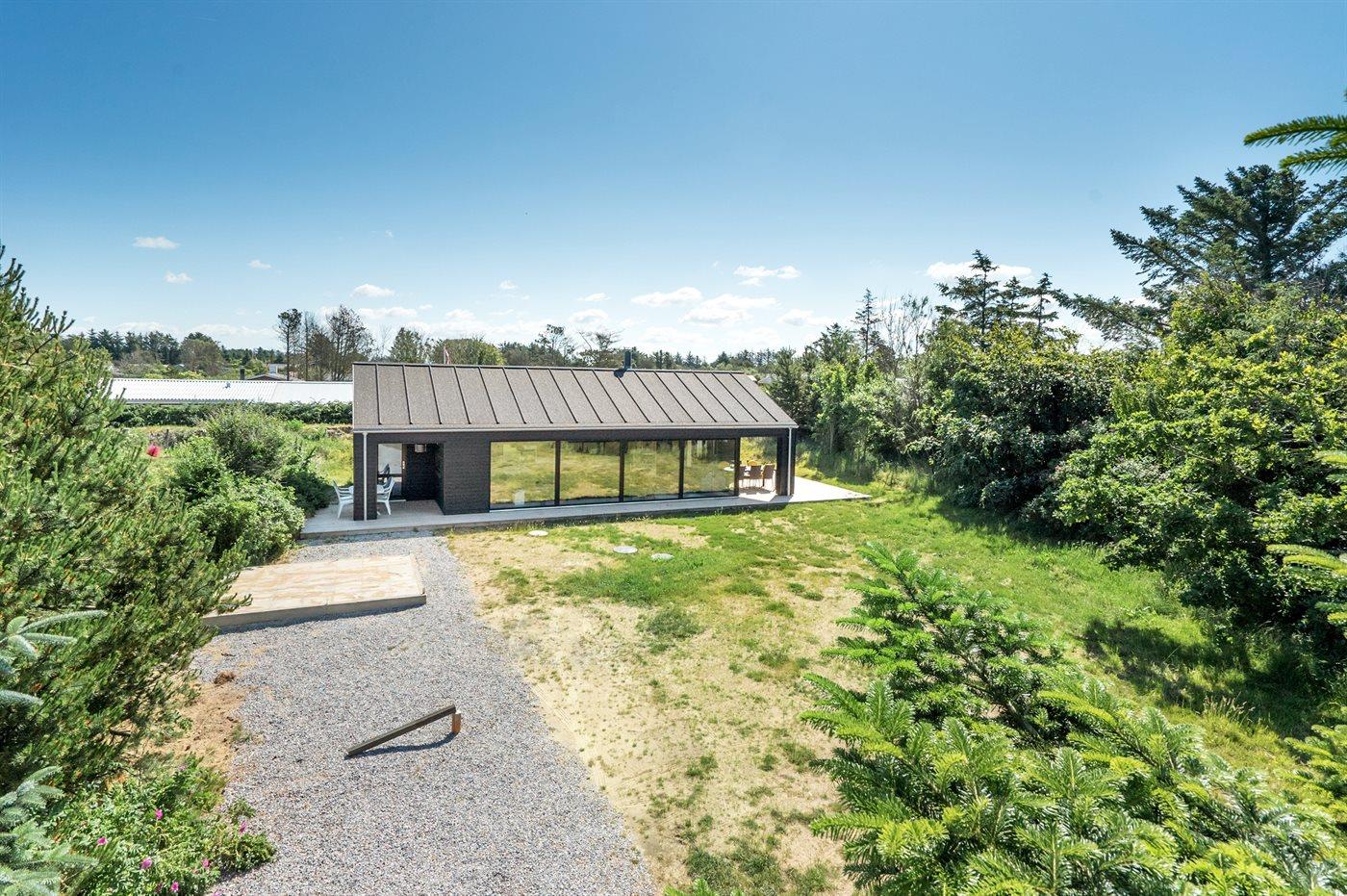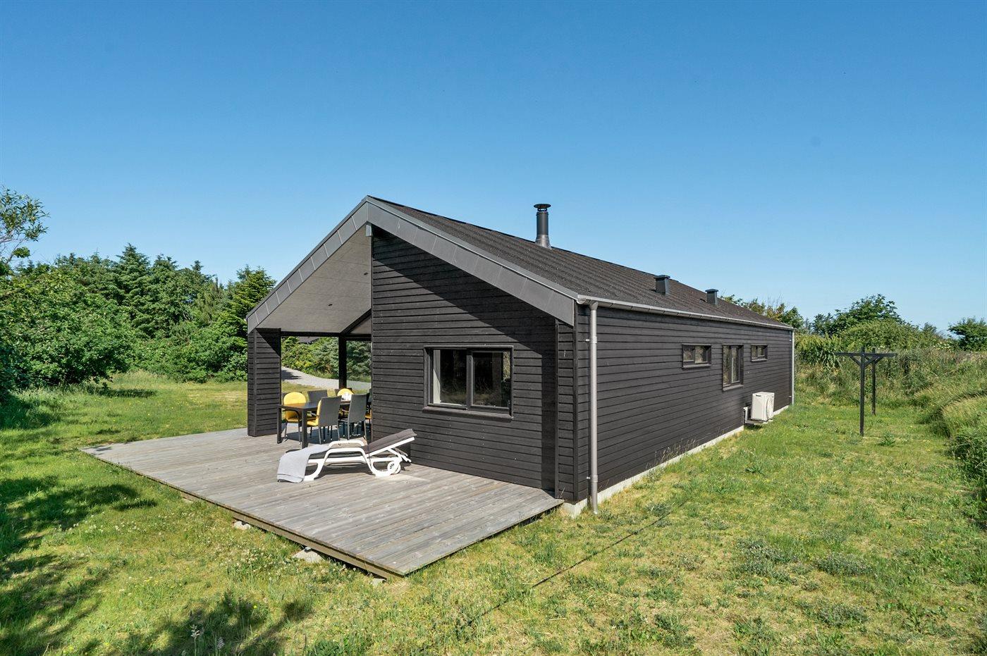 Nyopført sommerhus nær Lønstrups hav og bymiljø med moderne faciliteter og to terrasser.