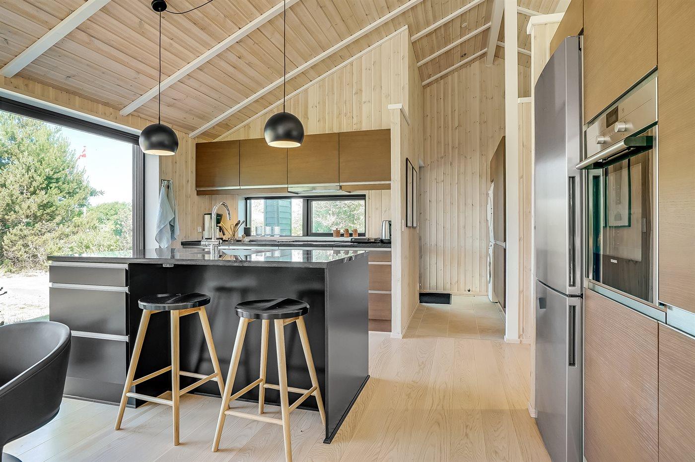 Køkkenet er udstyret med 1 køleskab. Der er 4 induktionskogeplader, varmluftovn, mikrobølgeovn samt opvaskemaskine.