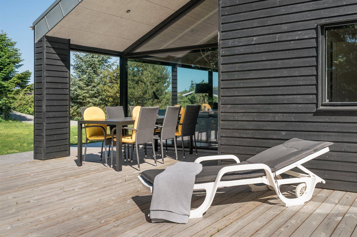 Ferieboligen er beliggende på en 1150 m² stor naturgrund. Der er 561 m til havet. Nærmeste forretning er beliggende i en afstand af 500 m. Til ferieboligen hører 17 m² terrasseareal. Desuden er der 10 m² overdækket terrasse. Der er redskabsrum. Der er carport til rådighed. Parkering ved ferieboligen.
