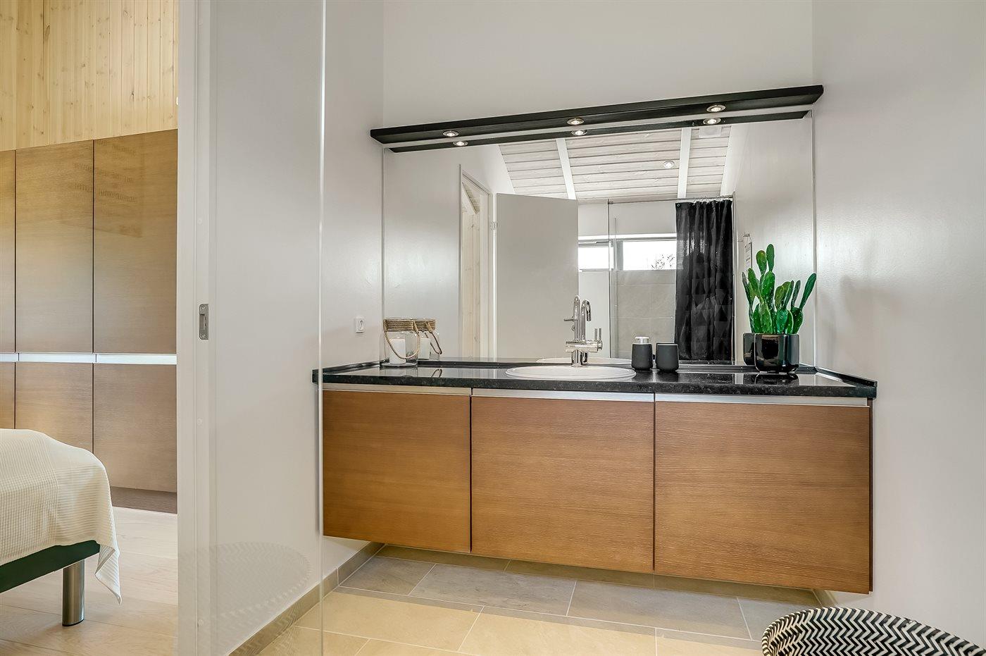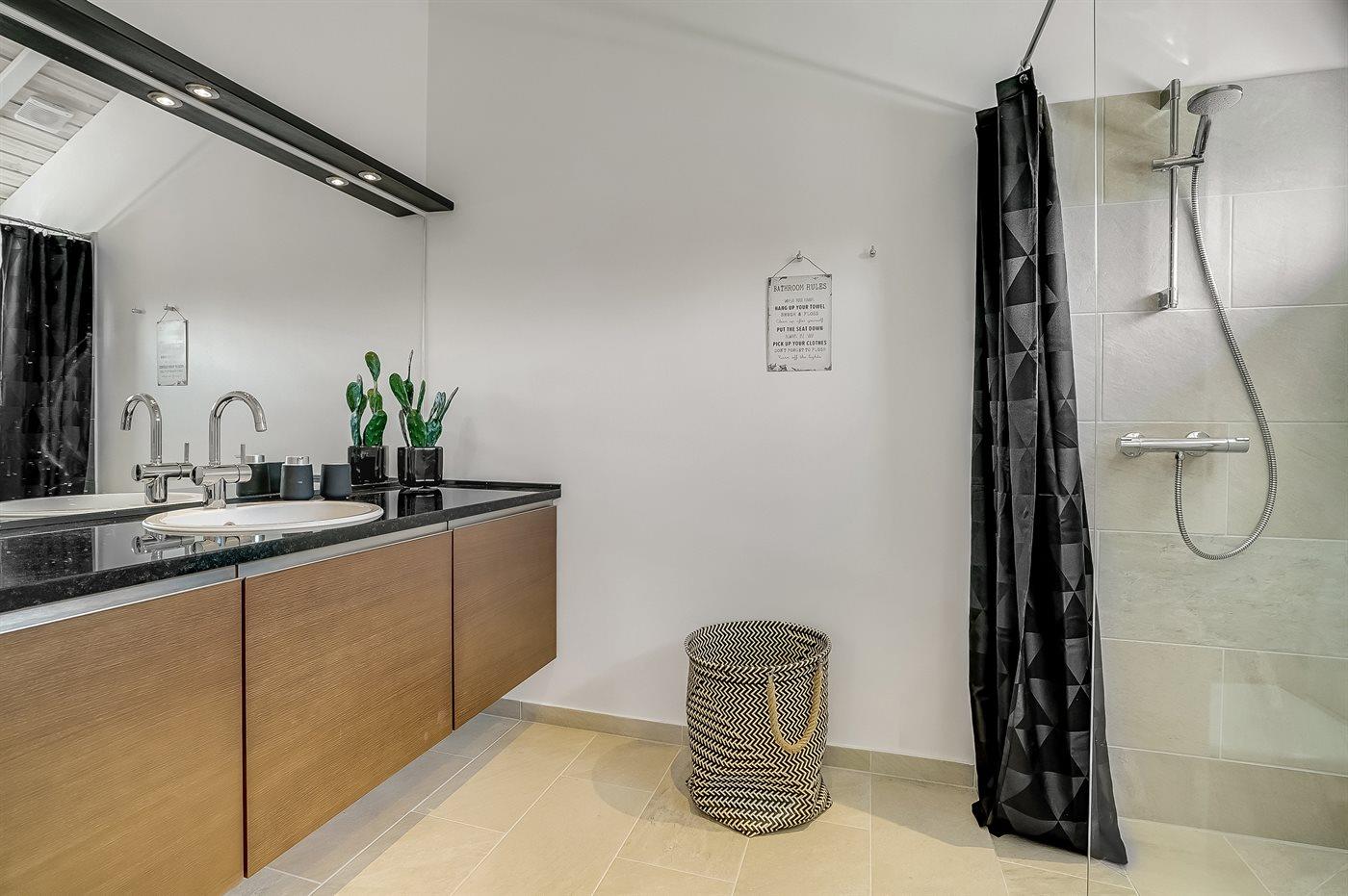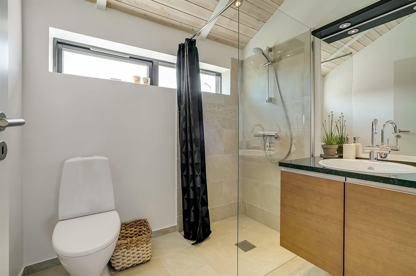 Der er 2 badeværelser med bruseniche og 2 toiletter. Der er gulvvarme på 2 badeværelser.