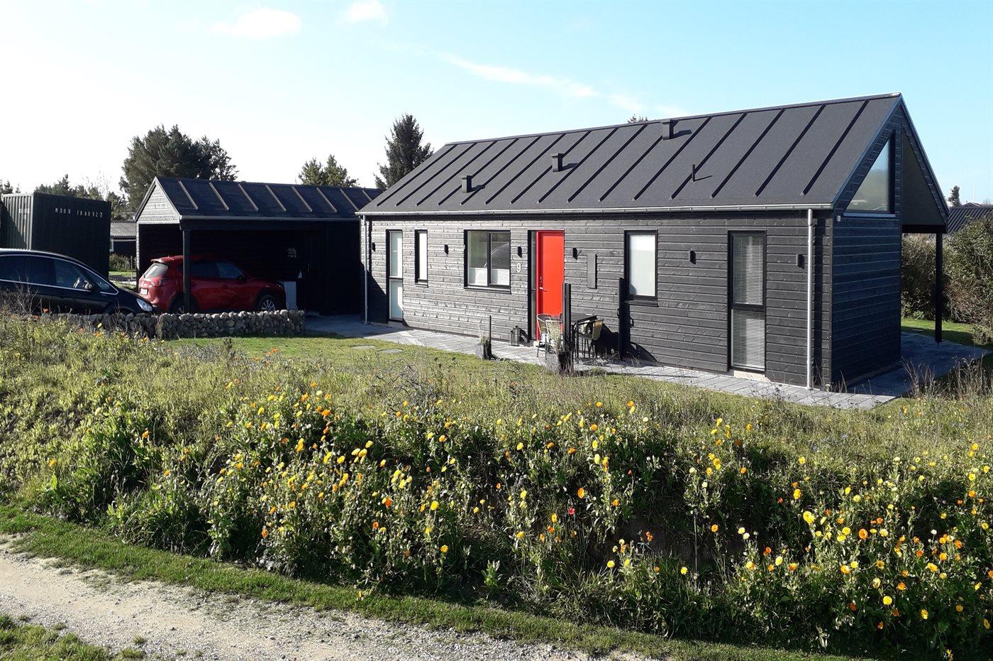 Ferieboligen er beliggende på en 1212 m² stor naturgrund. Der er 500 m til havet. Nærmeste forretning er beliggende i en afstand af 900 m. Til ferieboligen hører 80 m² terrasseareal. Desuden er der 7 m² overdækket terrasse. Der er redskabsrum. Sandkasse. Bålsted. Der er carport til rådighed. Der er installeret stik til opladning af elbil. Parkering ved ferieboligen.