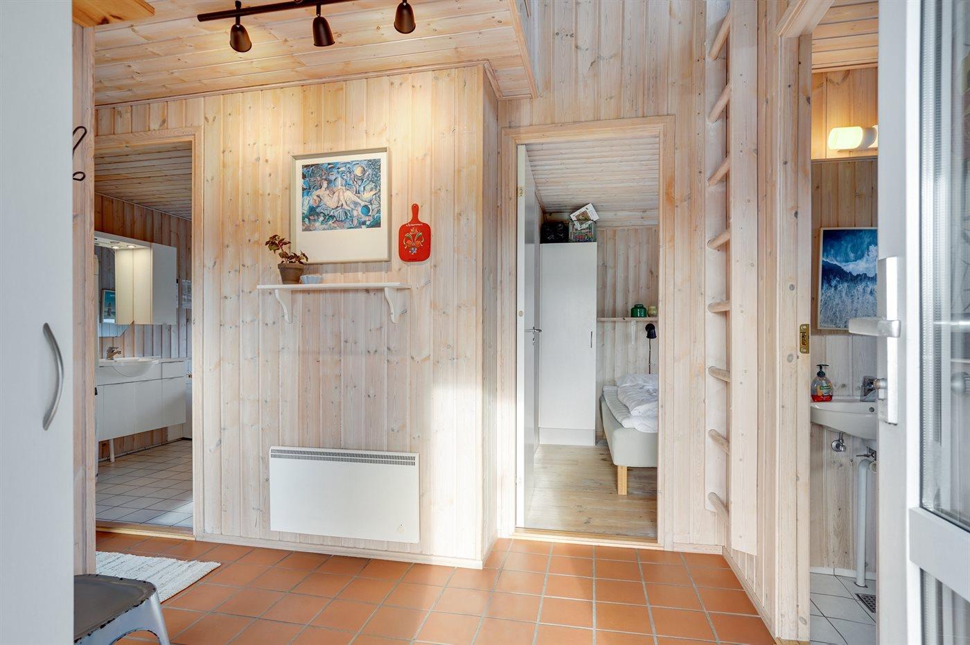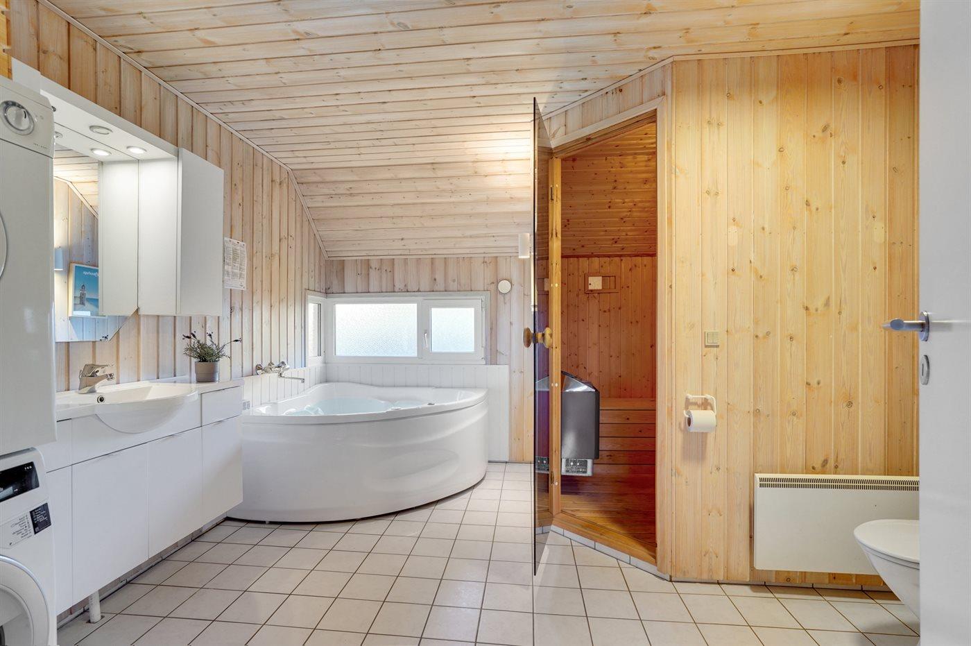 Der er 1 badeværelse med bruseniche og 2 toiletter, heraf 1 gæstetoilet. Der er gulvvarme på 1 badeværelse. Der er gulvvarme på gæstetoilettet. I saunaen er der mulighed for afslapning.