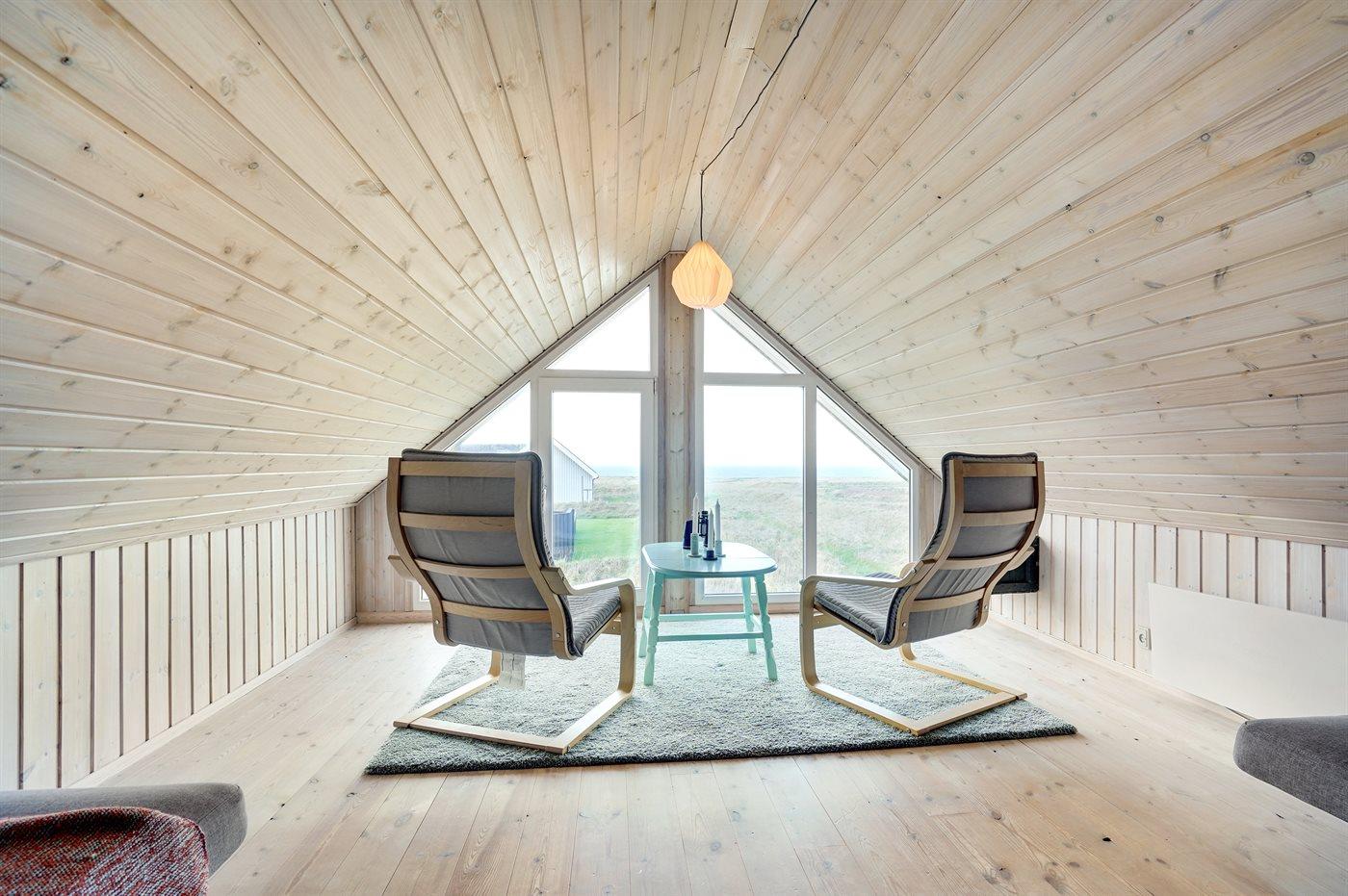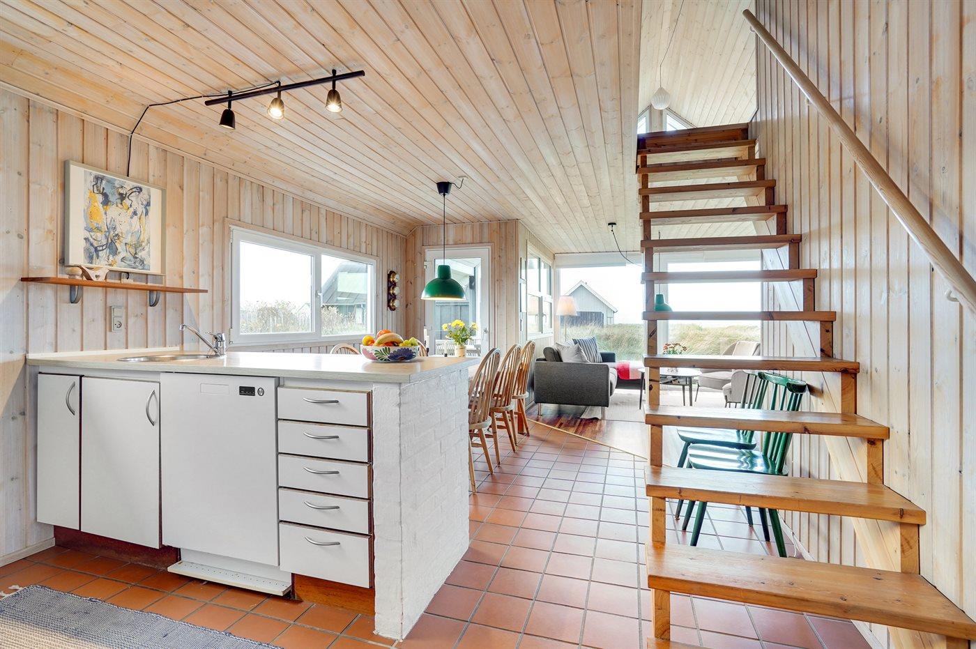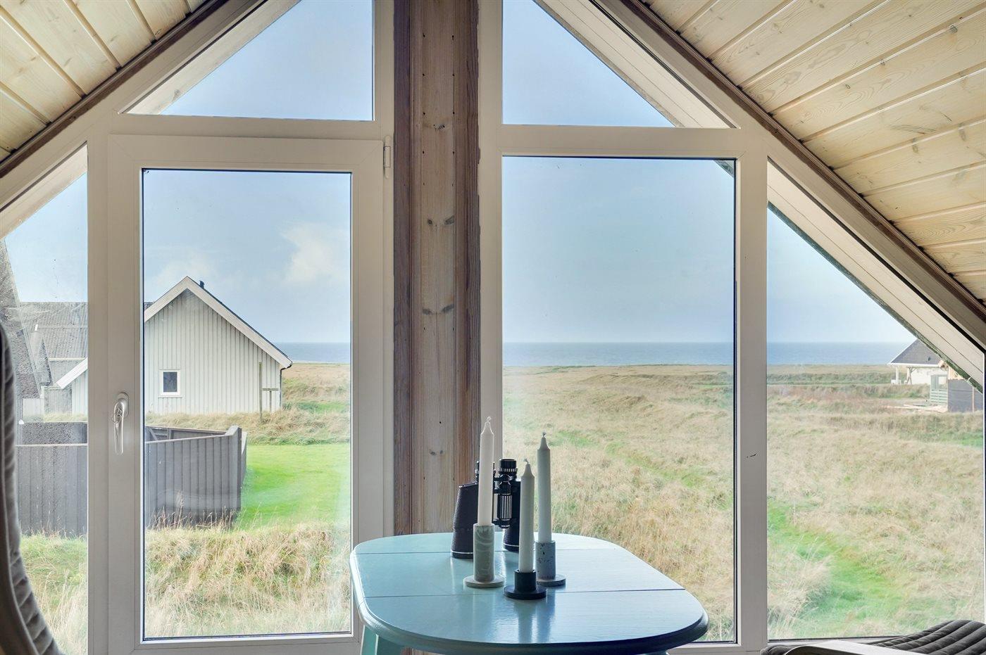 Skønt beliggende sommerhus med udsigt til Vesterhavet samt Rubjerg Knude Fyr fra såvel hus som grund. Huset ligger tilbagetrukket på en delvis åben grund med plads til boldspil og leg, og på den store sydvendte terrasse kan man nyde solens stråler fra tidlig morgen til sen aften. Huset fremstår velholdt og er indrettet lyst med mange store vinduespartier. På husets 1. sal findes en ekstra opholdsstue, hvorfra udsigten rigtig kan nydes.
