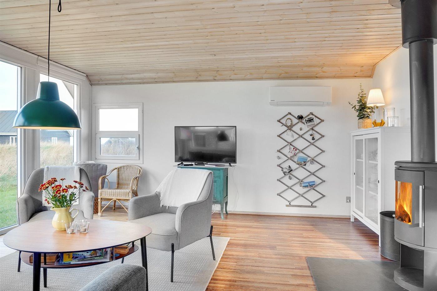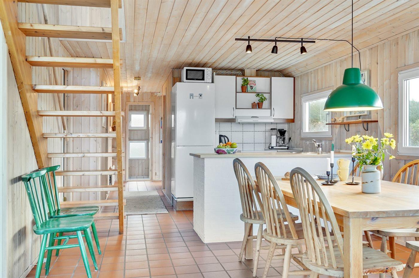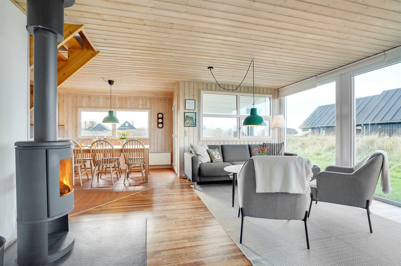 Skønt beliggende sommerhus med udsigt til Vesterhavet samt Rubjerg Knude Fyr fra såvel hus som grund. Huset ligger tilbagetrukket på en delvis åben grund med plads til boldspil og leg, og på den store sydvendte terrasse kan man nyde solens stråler fra tidlig morgen til sen aften. Huset fremstår velholdt og er indrettet lyst med mange store vinduespartier. På husets 1. sal findes en ekstra opholdsstue, hvorfra udsigten rigtig kan nydes.
