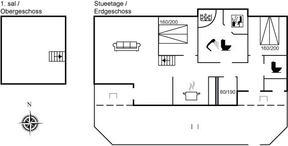 Der er i alt 3 soveværelser. Sovepladserne fordeler sig på: 4 sovepladser i dobbeltsenge. 2 sovepladser i køjeseng. Derudover er der 1 stk. barneseng.