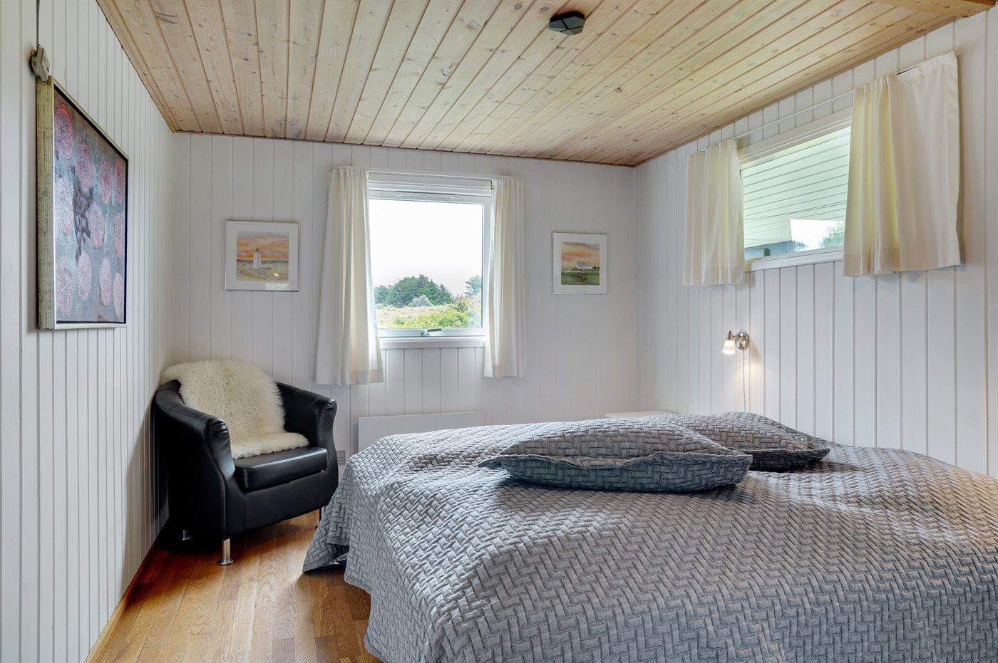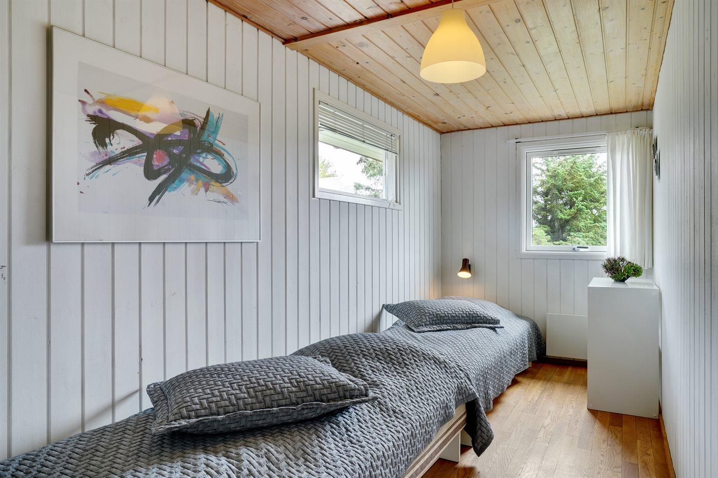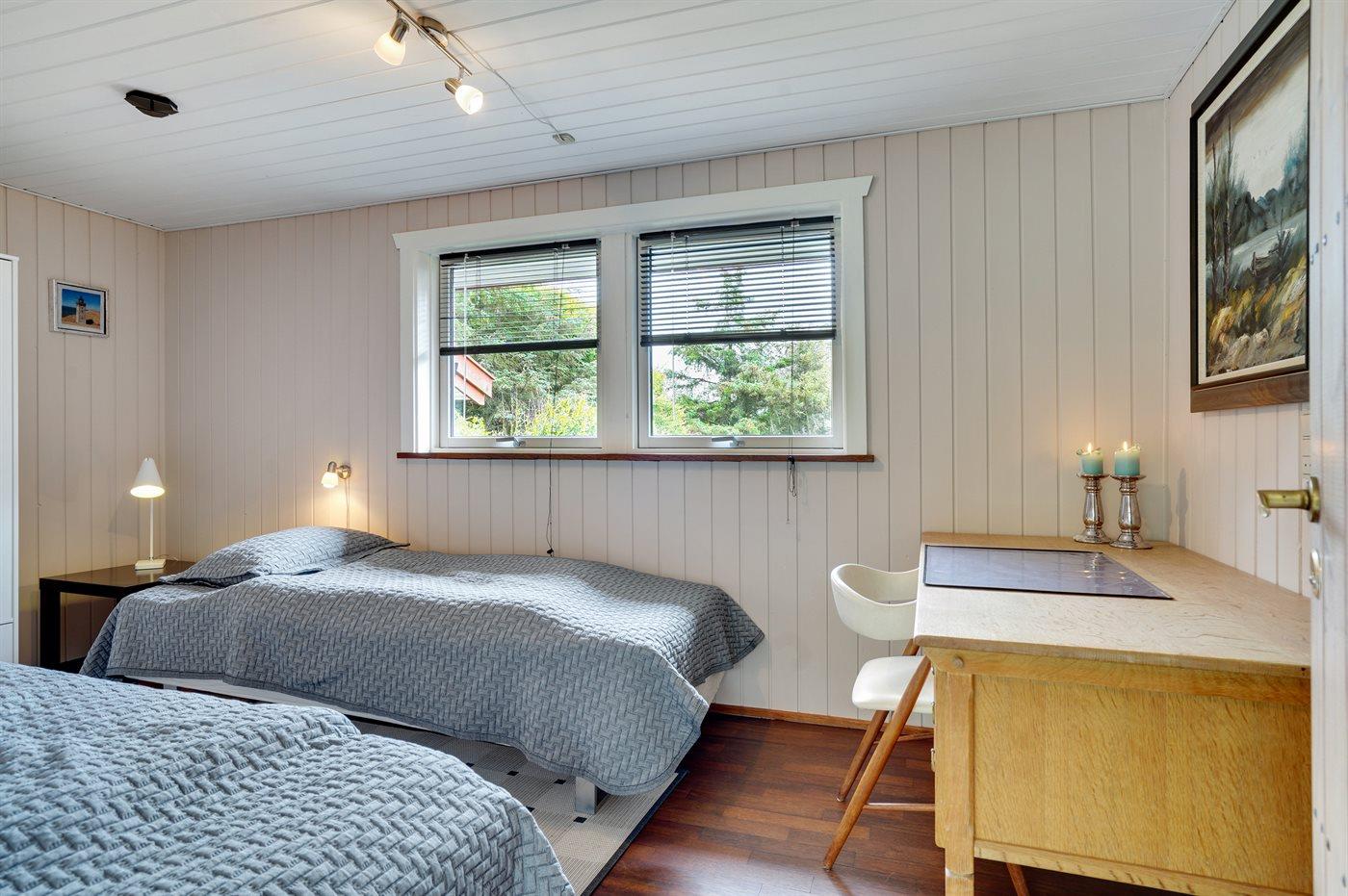 Der er i alt 3 soveværelser. Sovepladserne fordeler sig på: 2 sovepladser i dobbeltseng. 4 sovepladser i enkeltsenge. Derudover er der 1 stk. barneseng.
