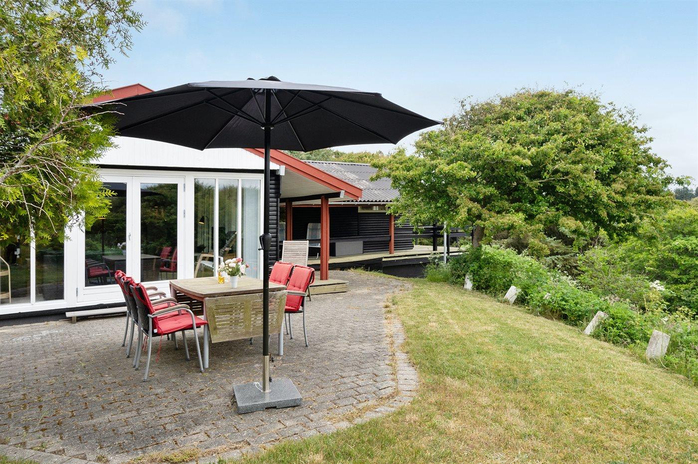 Ferieboligen er beliggende på en 3400 m² stor naturgrund. Der er 420 m til havet. Nærmeste forretning er beliggende i en afstand af 1500 m. Der er en golfbane i en afstand af 3600 m. Til ferieboligen hører 40 m² terrasseareal. Desuden er der 10 m² overdækket terrasse. Grill til rådighed. Parkering ved ferieboligen.