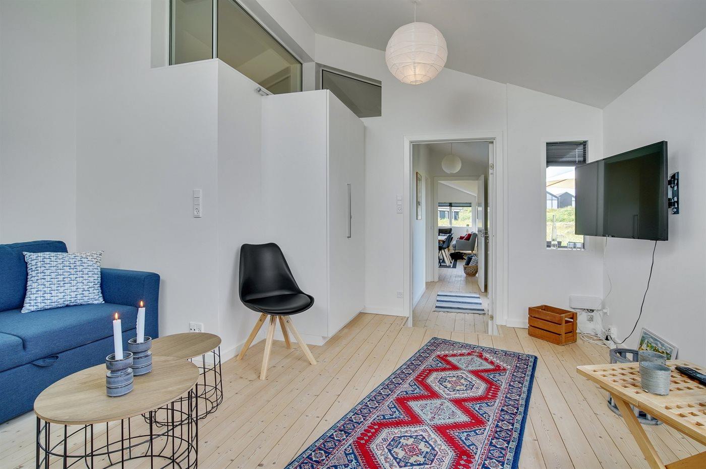 I ferieboligen er der 1 TV. 1 Smart-TV. Der er mindst 4 danske kanaler. 1-3 svenske kanaler. 1-3 norske kanaler. Mindst 4 tyske kanaler. 1-3 engelske kanaler. Der er trådløst internet til rådighed.