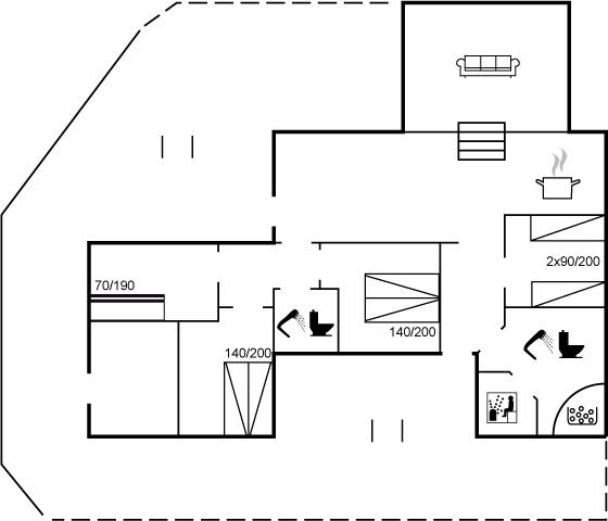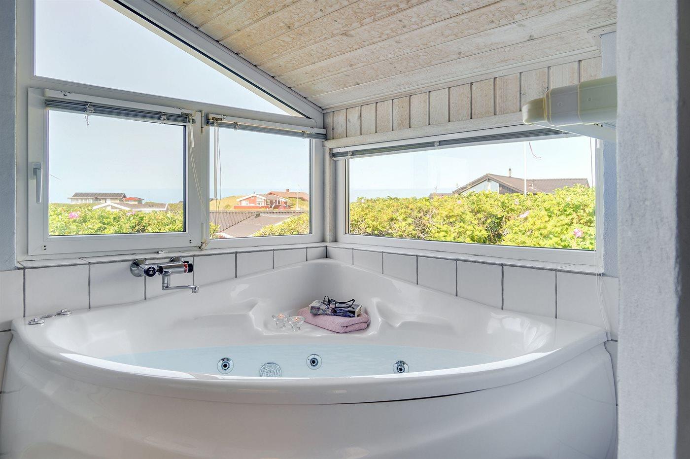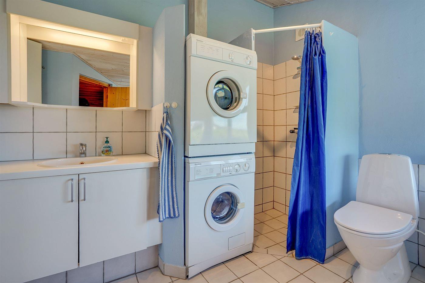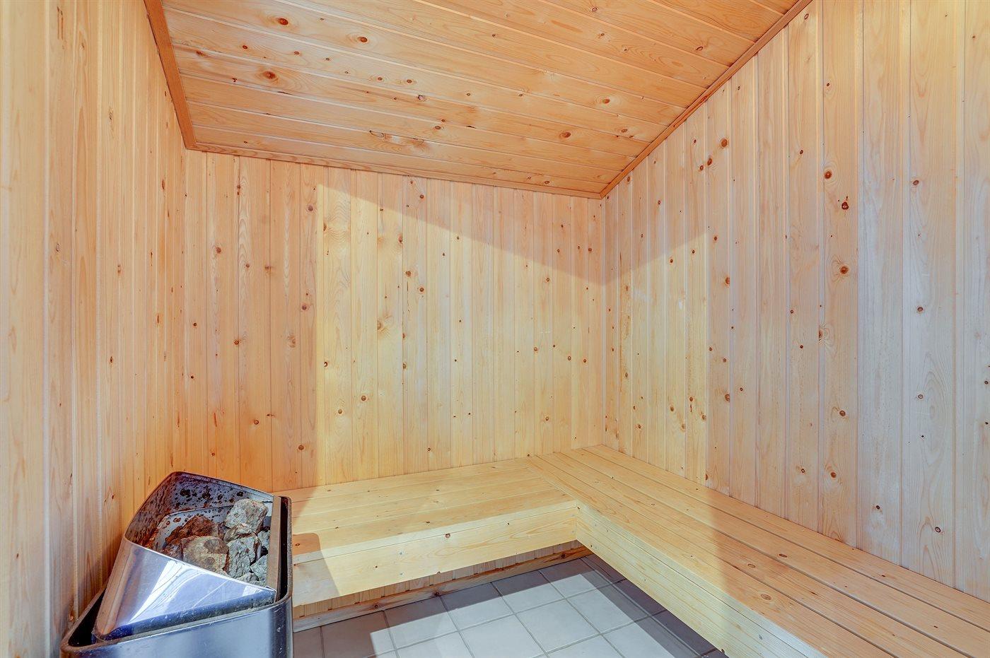 Der er 2 badeværelser med bruseniche og 2 toiletter. Der er gulvvarme på 2 badeværelser. I saunaen er der mulighed for afslapning.