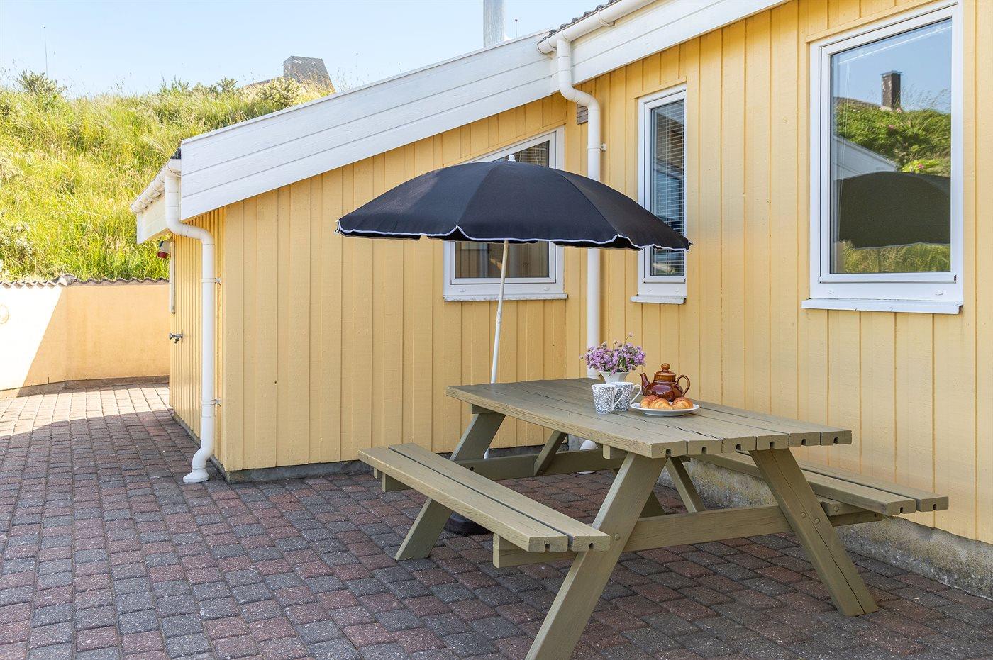 Ferieboligen er beliggende på en 1250 m² stor naturgrund. Der er 176 m til havet. Nærmeste forretning er beliggende i en afstand af 50 m. Til ferieboligen hører 80 m² terrasseareal. Der er redskabsrum. Grill til rådighed. Der er installeret stik til opladning af elbil. Parkering ved ferieboligen.
