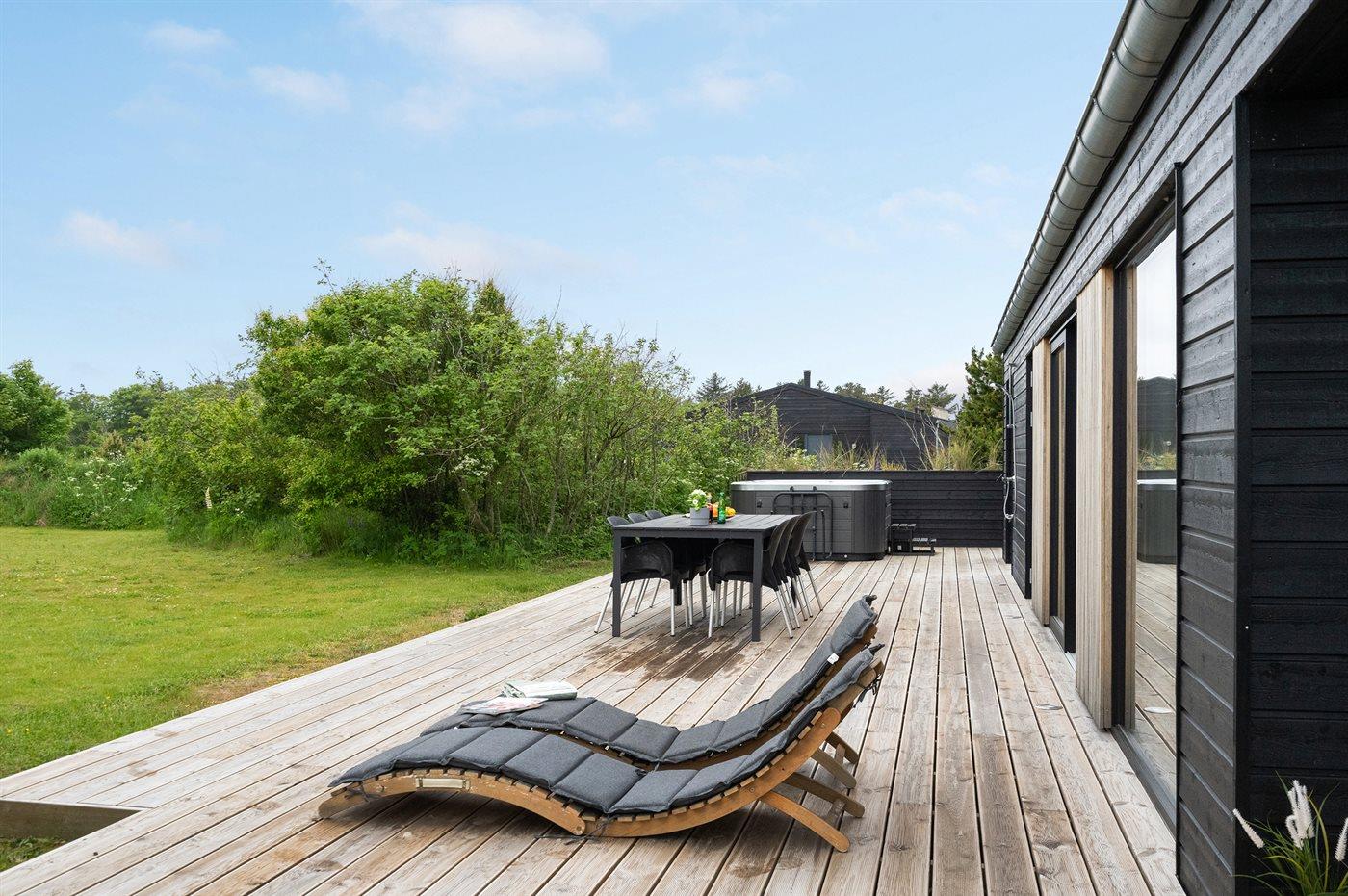 Moderne sommerhus fra 2021 nær Lønstrup med spa, sauna og stor terrasse.