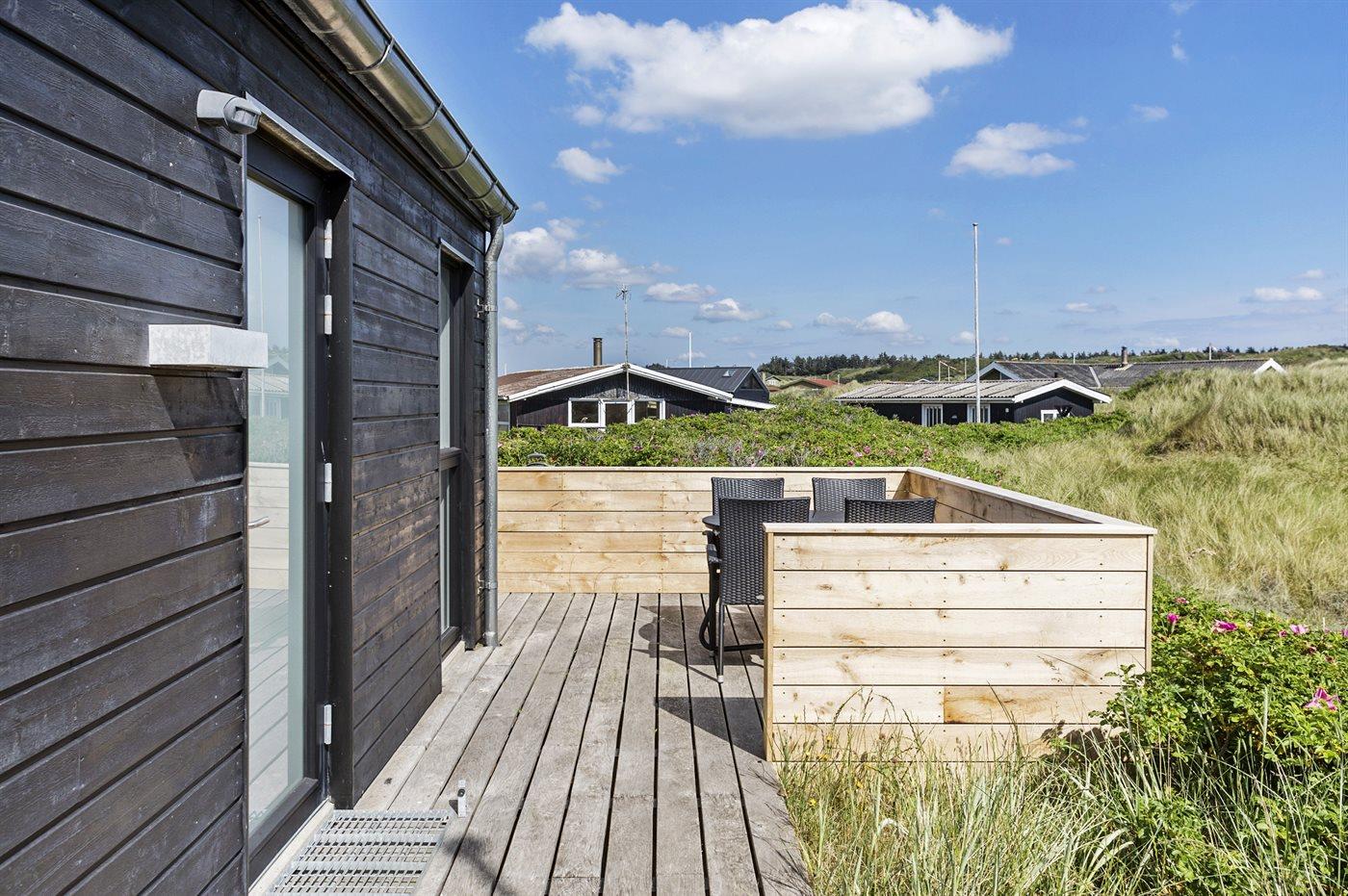 Der er gode terrasser hele vejen rundt om huset, så Vesterhavet og naturen kan nydes i fulde drag, og der er mulighed for at se solen stå op og gå ned hver dag. Der findes en dejlig badestrand kun 700 meter fra huset, og Lønstrup by ligger indenfor gåafstand.