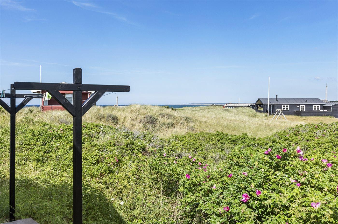 Ferieboligen er beliggende på en 3338 m² stor klitgrund. Der er 65 m til havet. Nærmeste forretning er beliggende i en afstand af 675 m. Der er en golfbane i en afstand af 4000 m. Til ferieboligen hører 50 m² terrasseareal. Grill til rådighed. Der er installeret stik til opladning af elbil. Med 22 kW ladeeffekt. Parkering ved ferieboligen.