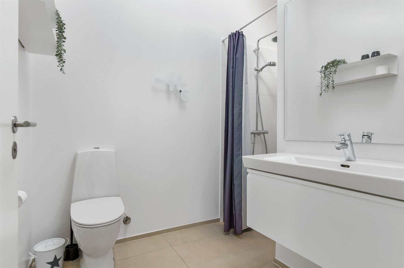Der er 1 badeværelse med bruseniche og 1 toilet.. Der er gulvvarme på 1 badeværelse.