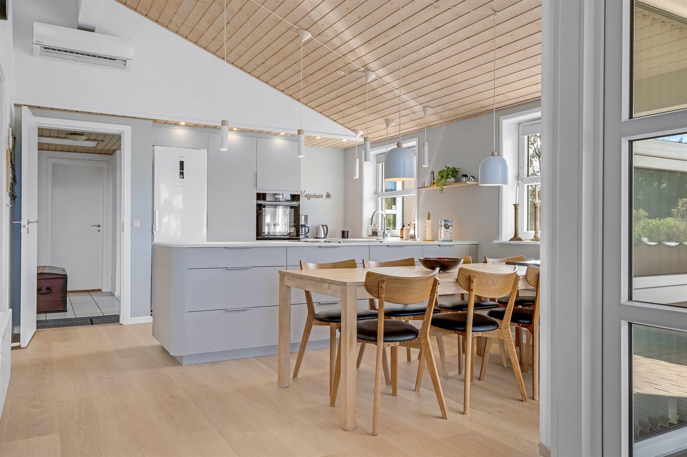 Køkkenet er udstyret med 1 køleskab. Der er 4 induktionskogeplader, miniovn, varmluftovn samt opvaskemaskine.