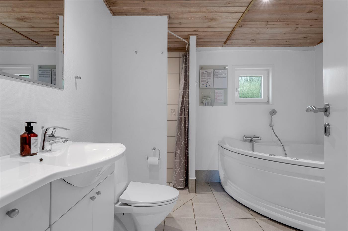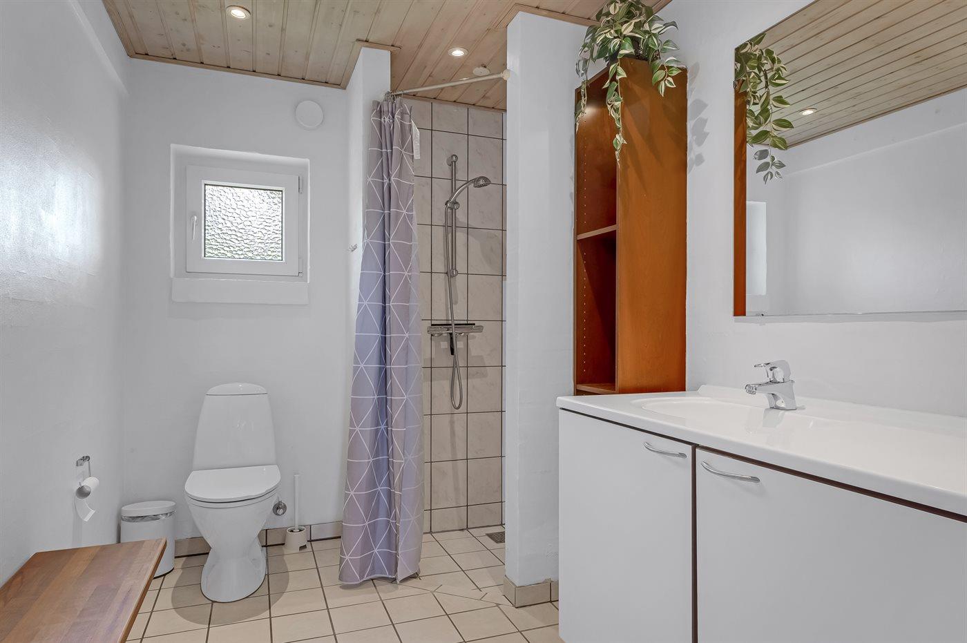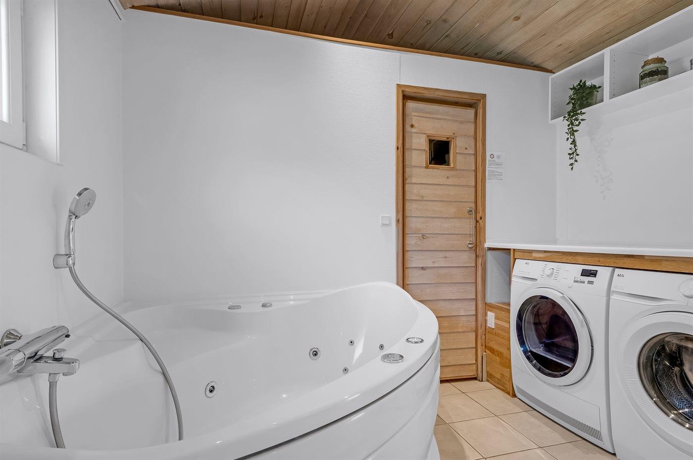 Der er 2 badeværelser med bruseniche og 2 toiletter. Der er gulvvarme på 2 badeværelser. I saunaen er der mulighed for afslapning.