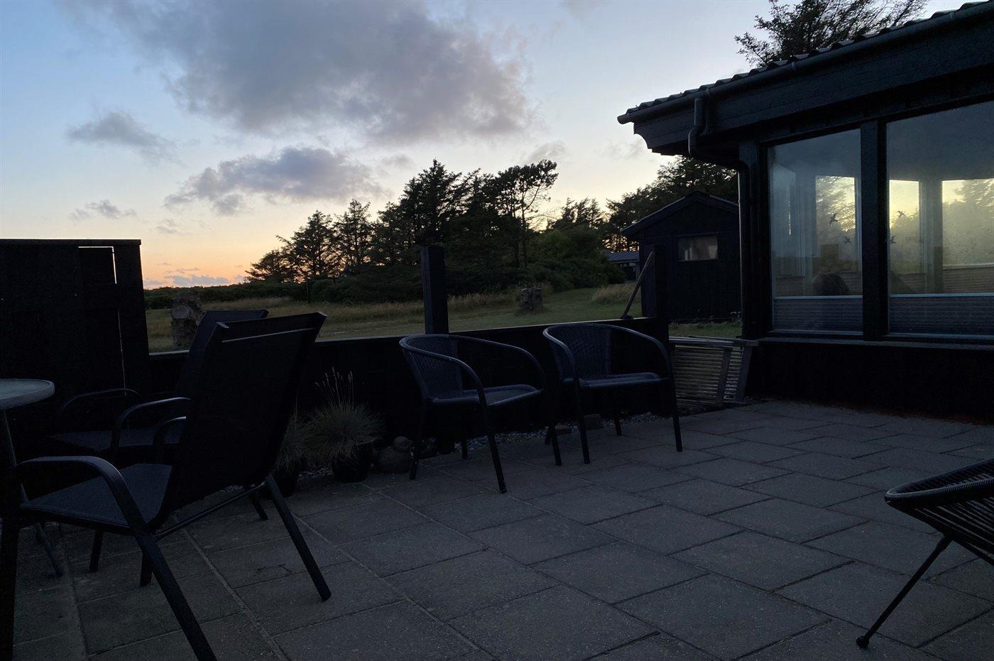 Ferieboligen er beliggende på en 2130 m² stor naturgrund. Der er 340 m til havet. Nærmeste forretning er beliggende i en afstand af 1100 m. Der er en golfbane i en afstand af 6000 m. Til ferieboligen hører 70 m² terrasseareal. Heraf i alt 55 m² lukket terrasse. Grill til rådighed. Parkering ved ferieboligen.