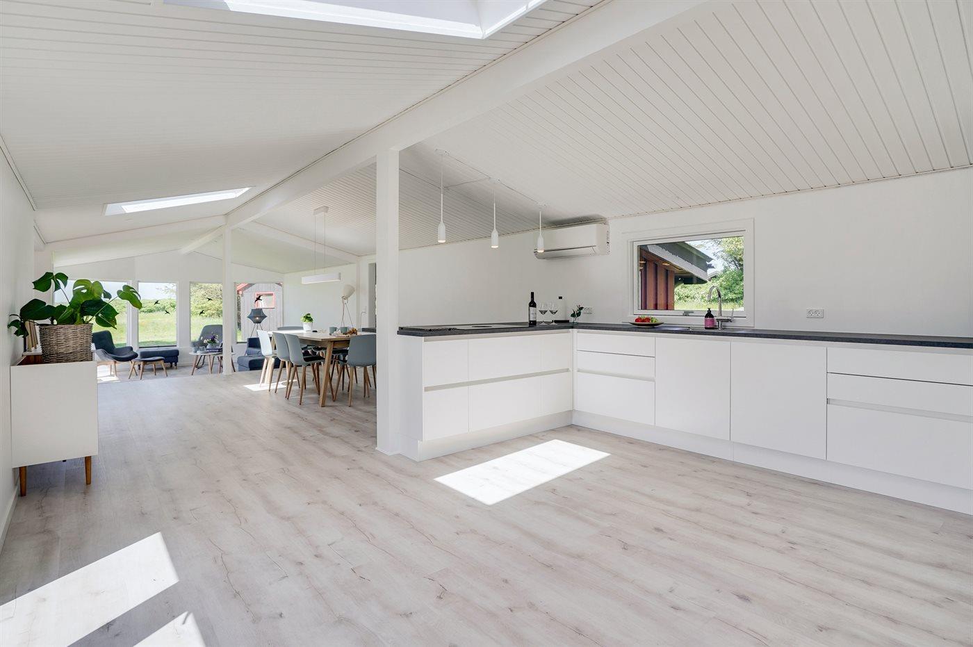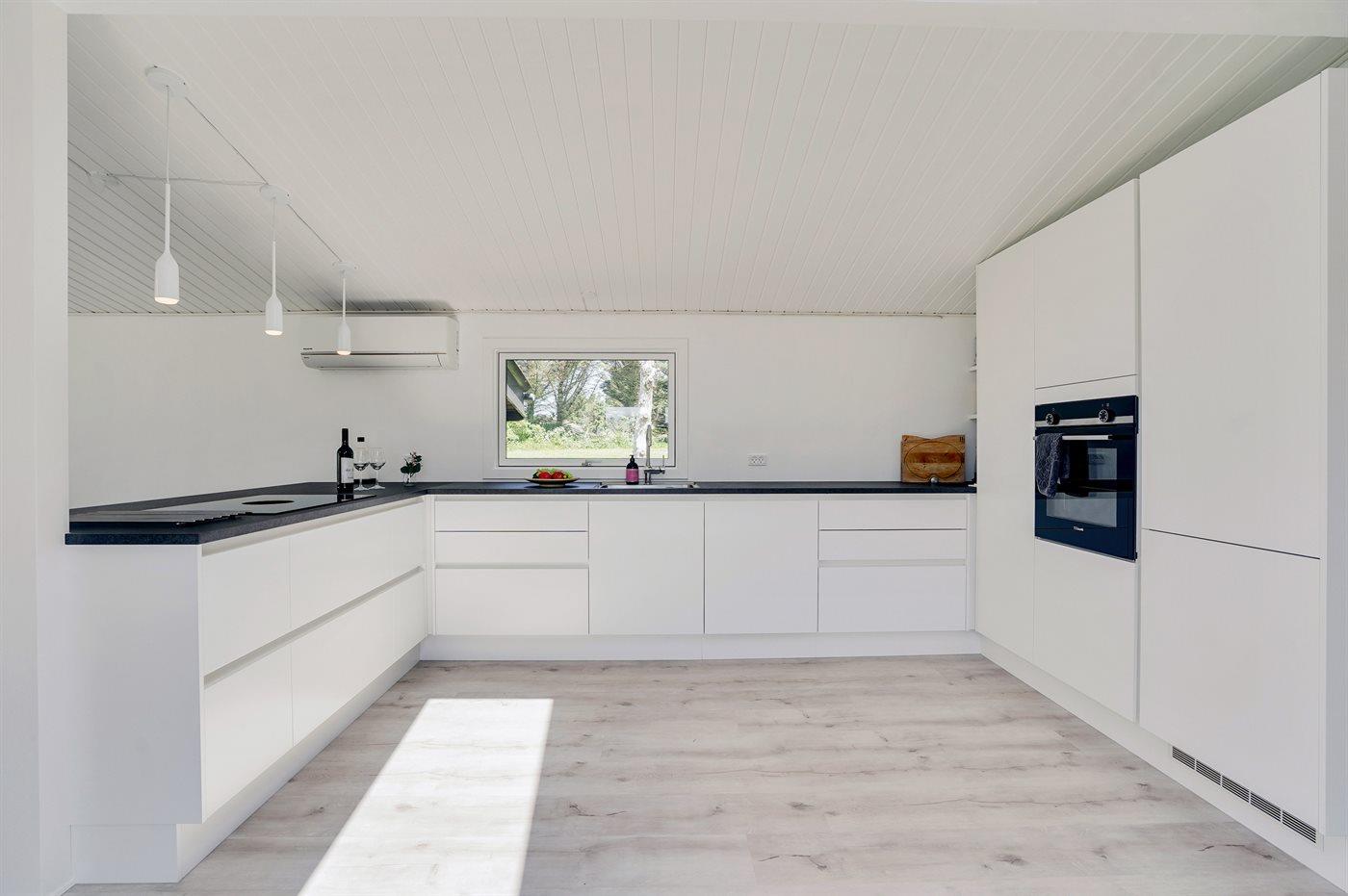 Køkkenet er udstyret med 1 køleskab. Der er 4 induktionskogeplader, varmluftovn, mikrobølgeovn samt opvaskemaskine.
