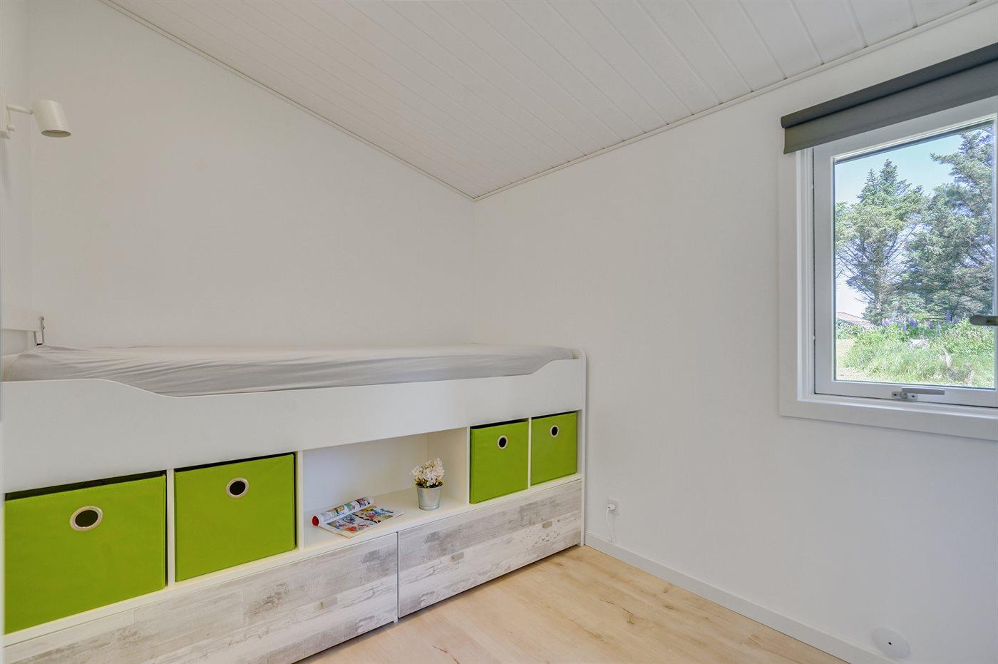 Der er i alt 4 soveværelser. Sovepladserne fordeler sig på: 4 sovepladser i dobbeltsenge. 2 sovepladser i enkeltsenge.
