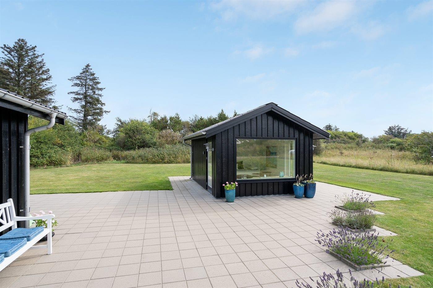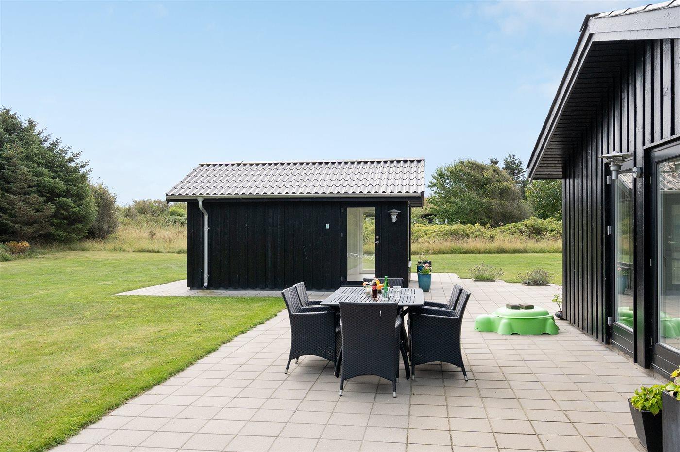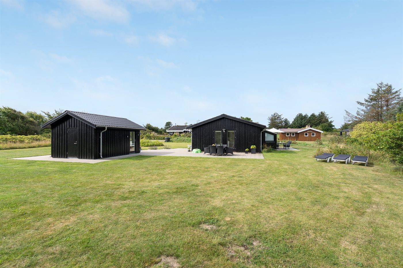 Ferieboligen er beliggende på en 2250 m² stor naturgrund. Der er 800 m til havet. Nærmeste forretning er beliggende i en afstand af 500 m. Til ferieboligen hører 75 m² terrasseareal. Der er redskabsrum. Sandkasse. Grill til rådighed. Parkering ved ferieboligen.
