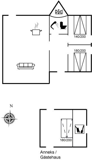 Der er i alt 3 soveværelser. Sovepladserne fordeler sig på: 4 sovepladser i dobbeltsenge. 2 sovepladser i sovesofa (dobbelt).- 2 af disse sovepladser befinder sig i et anneks. Derudover er der 1 stk. barneseng.